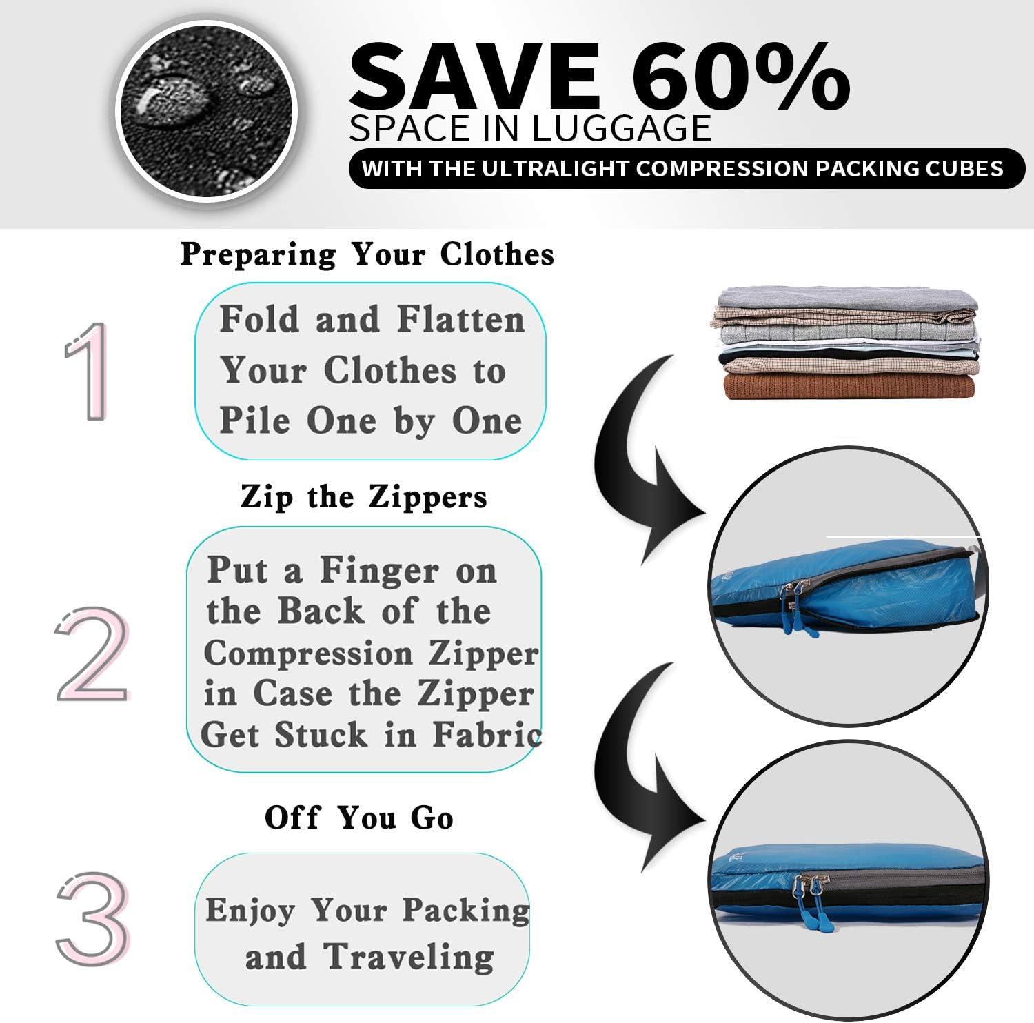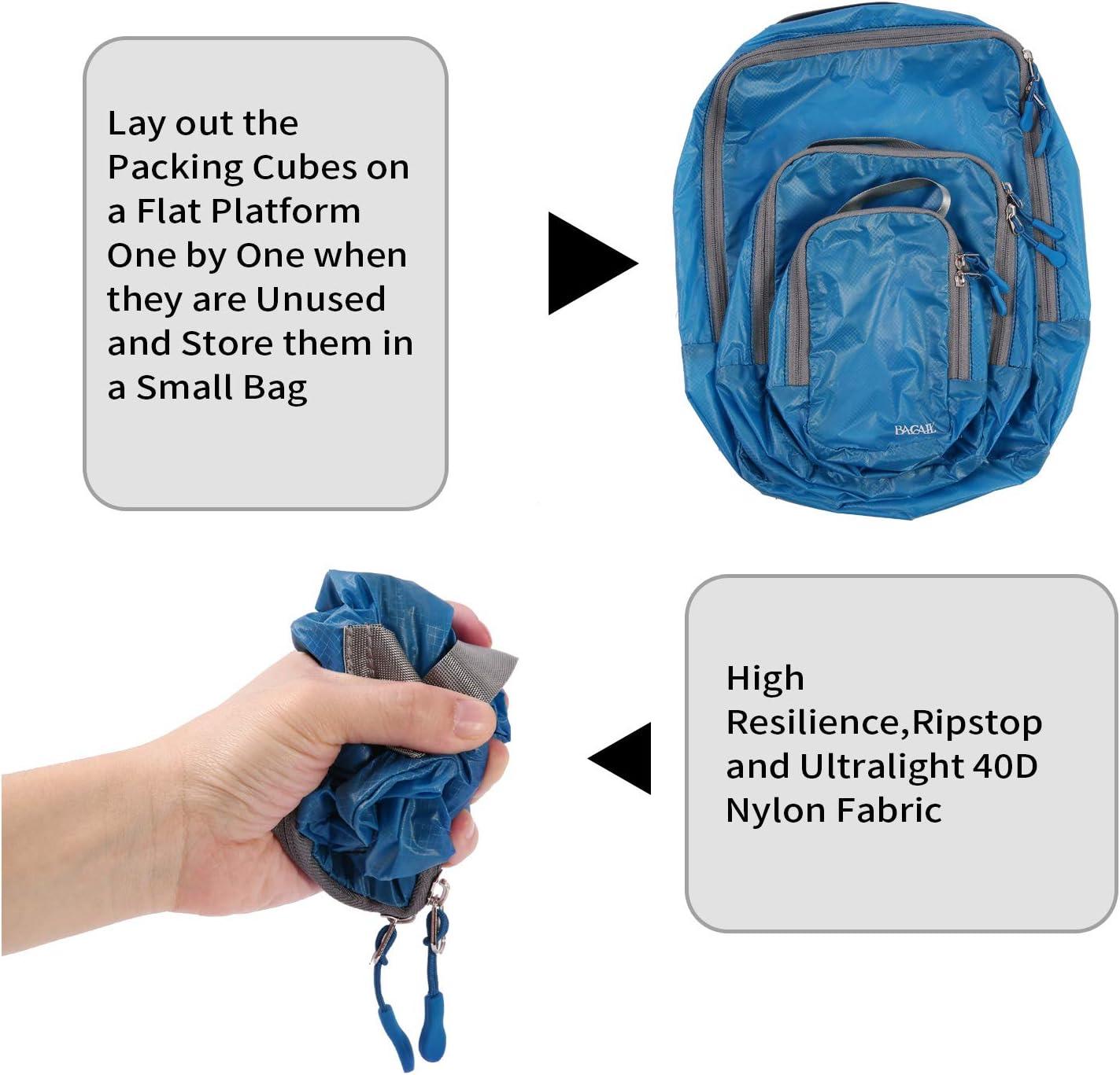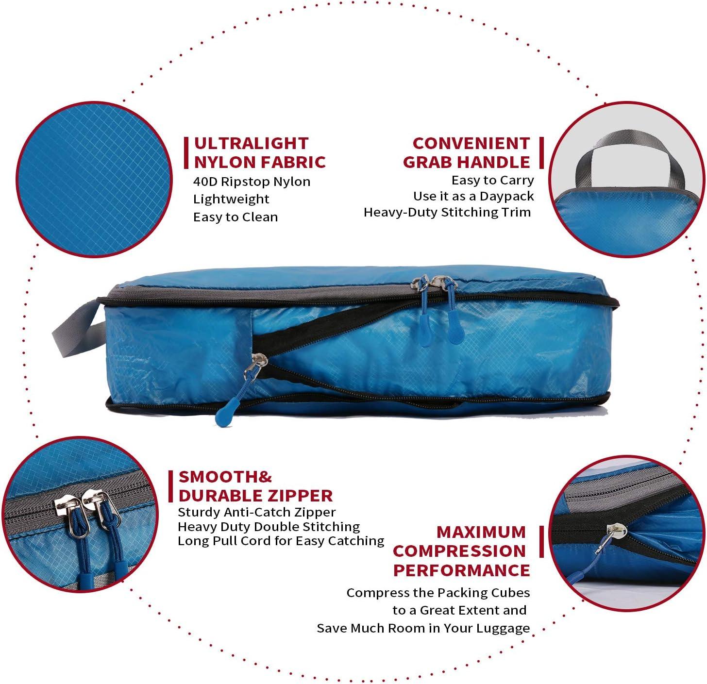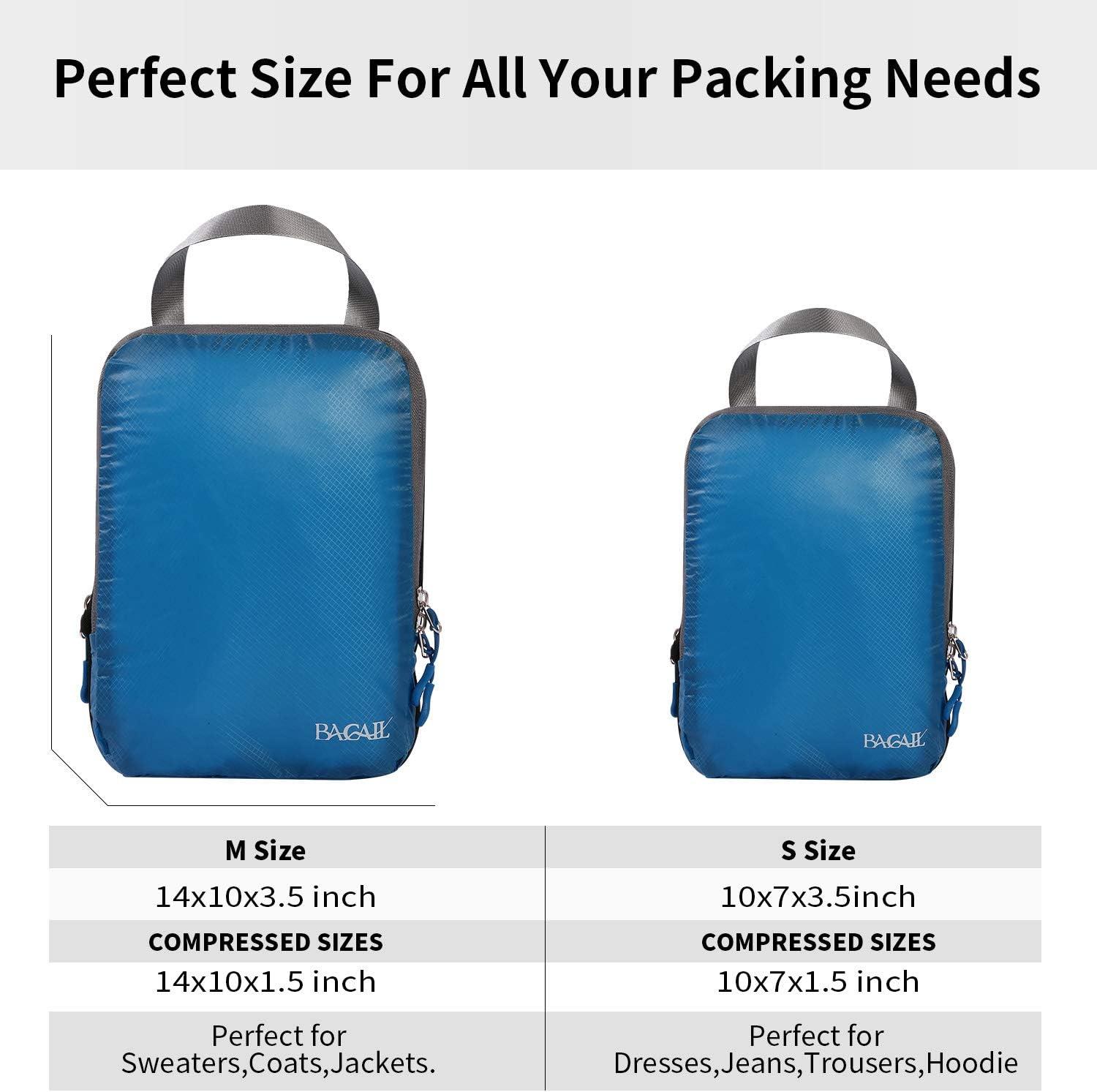 BAGAIL 3 Set Ultralight Compression Packing Cubes Expandable Travel Packing Organizers Blue(2M+S)