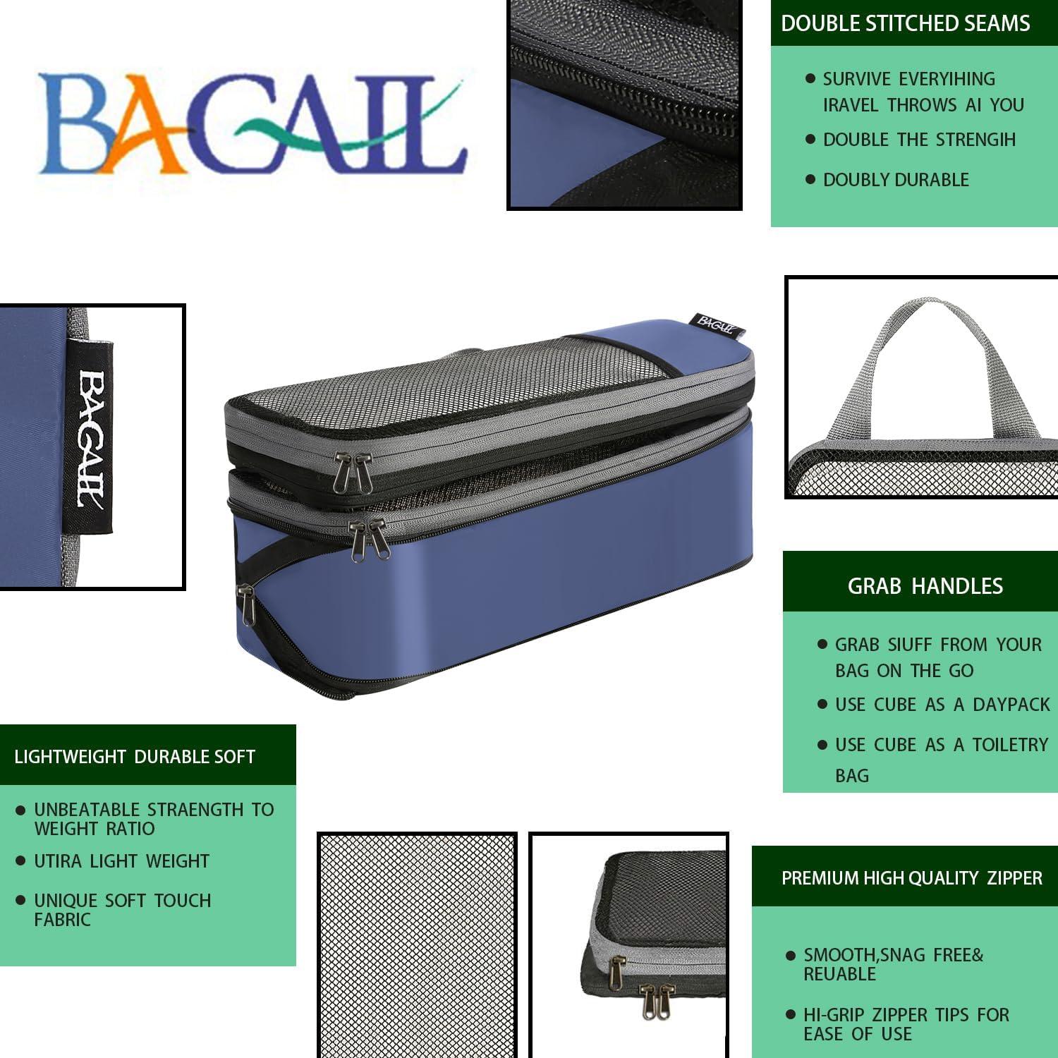 BAGAIL 4 Set/6 Set/8 Set Compression Packing Cubes Travel Accessories Expandable Packing Organizers (Square Mesh, 06-Black)(6-Navy)
