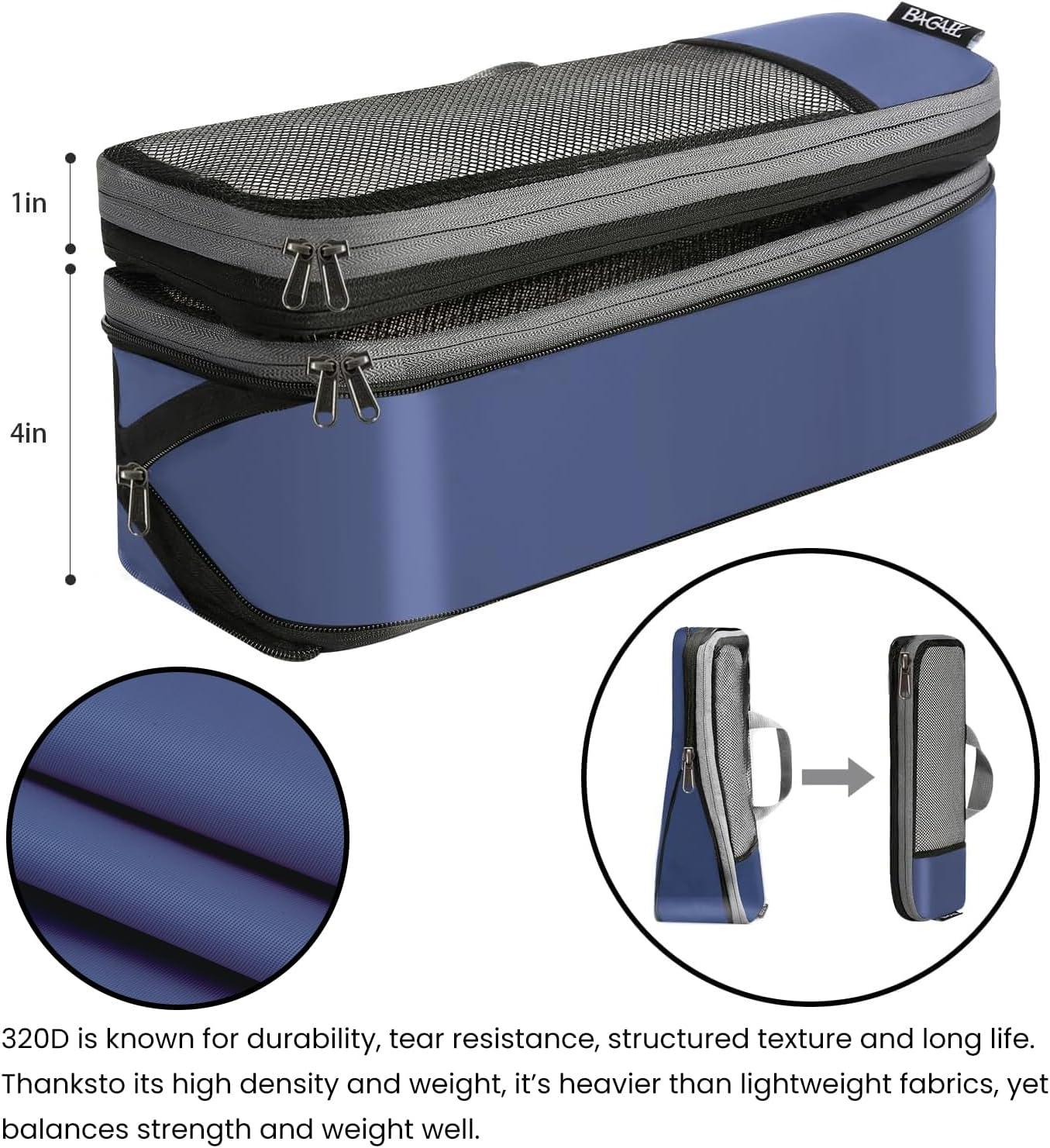 PREMIUM UPGRADED 320D FABRIC:Smooth&Soft 320D Fabric Protects Your Clothes from Wrinkles and Stains.High Performance Feature Makes Sure this Packing Cubes can Bear High Density Wear and Tear during Traveling.Water-Repellent Feature Nicely Protect Your Clothes from Spill or Leaks.Easily Store Your Clothes and Protect Your Clothes from Stains and Wrinkles.