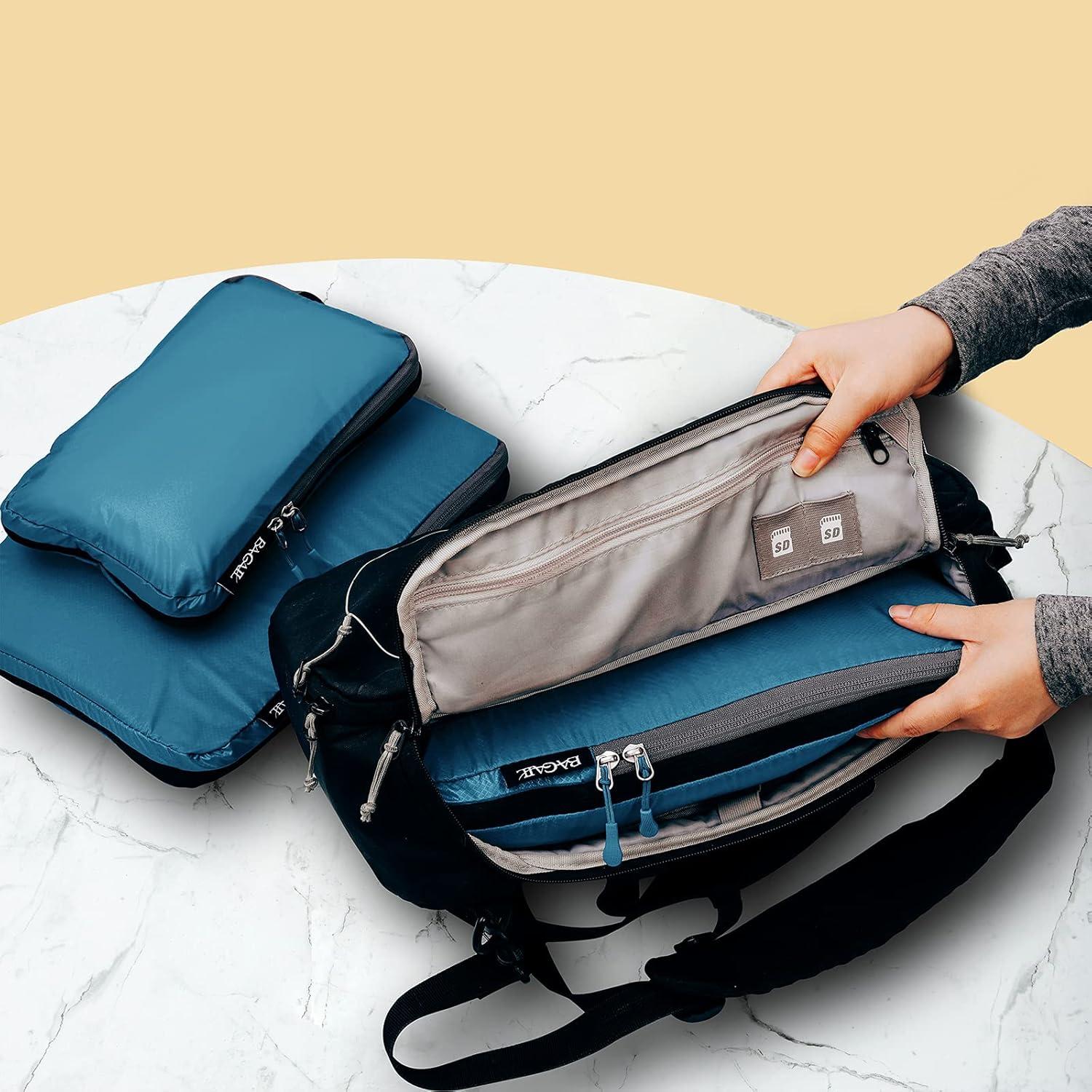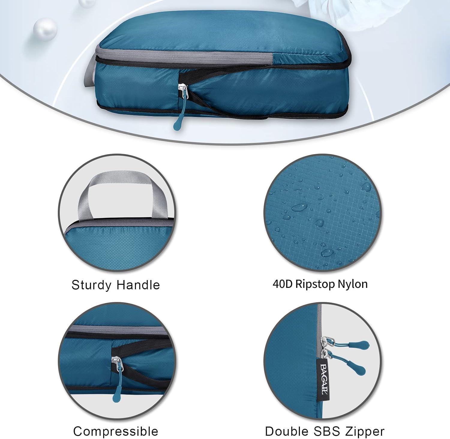 BAGAIL 3 Set Ultralight Compression Packing Cubes Expandable Travel Packing Organizers Blue(2M+S)