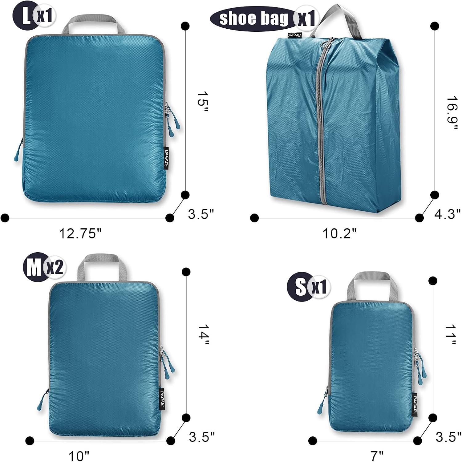 5 SETS INCLUDE: 1L-15*12.75*3.5 inch; 2M-14*10*3.5 inch; 1S-11*7*3.5 inch; 1 Shoe bag-16.9*10.2*4.3 inch