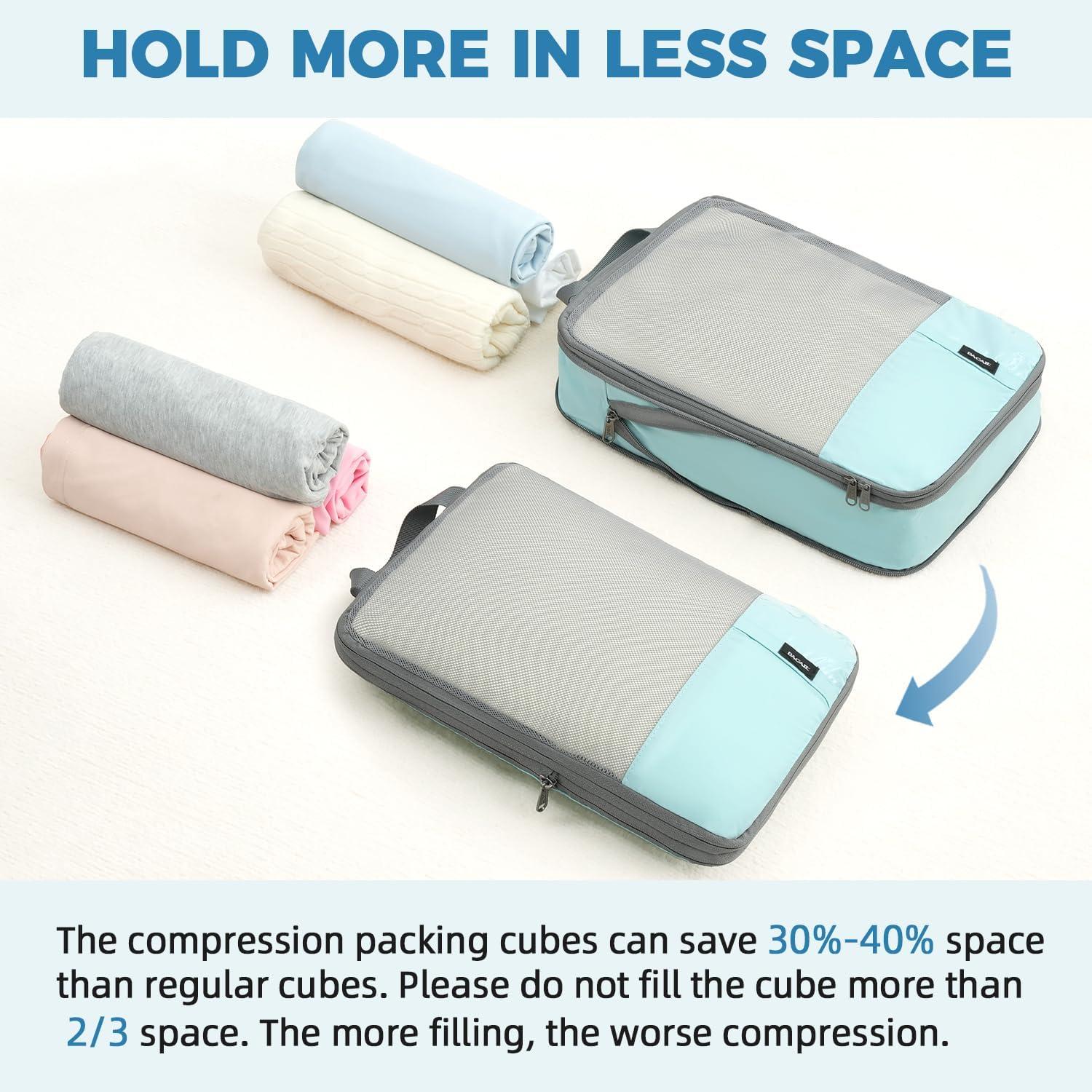 BAGAIL 6 Set/4 Set Lightweight Compression Packing Cubes for Travel, Anti-Tearing Expandable Organizer Bags for Suitcase(Dusty Blue)