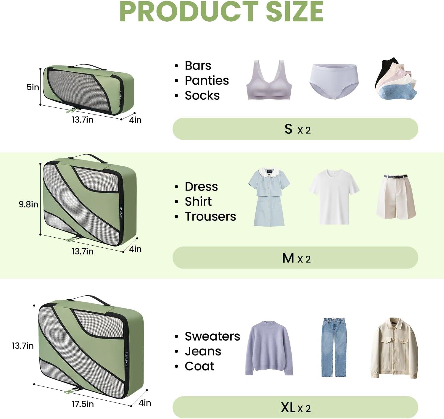 BAGAIL 6 Set Packing Cubes,Travel Luggage Packing Organizers(The Matcha Green)