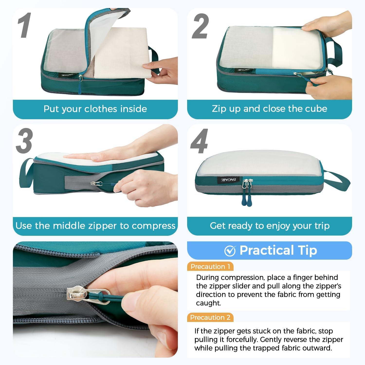 BAGAIL 6 Set Ultralight Compression Packing Cubes Packing Organizer for Travel Accessories Luggage Suitcase Backpack(06-Teal)