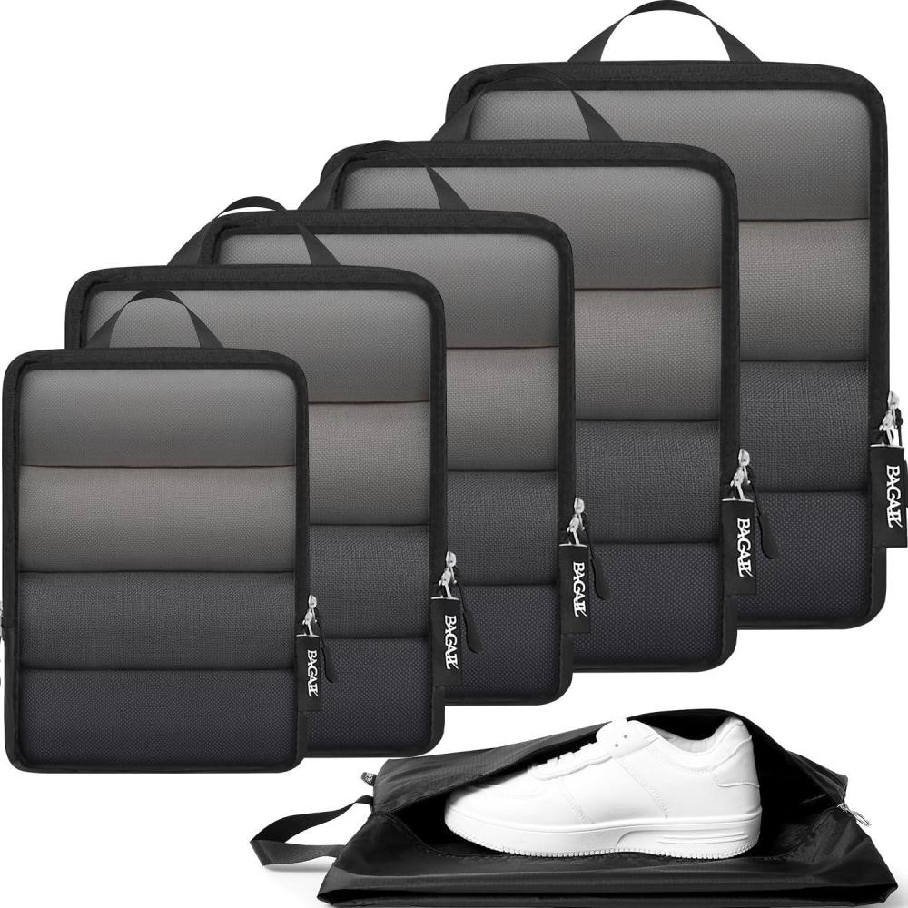 imageBAGAIL 6 Set Ultralight Compression Packing Cubes Packing Organizer for Travel Accessories Luggage Suitcase Backpack6Jet Black