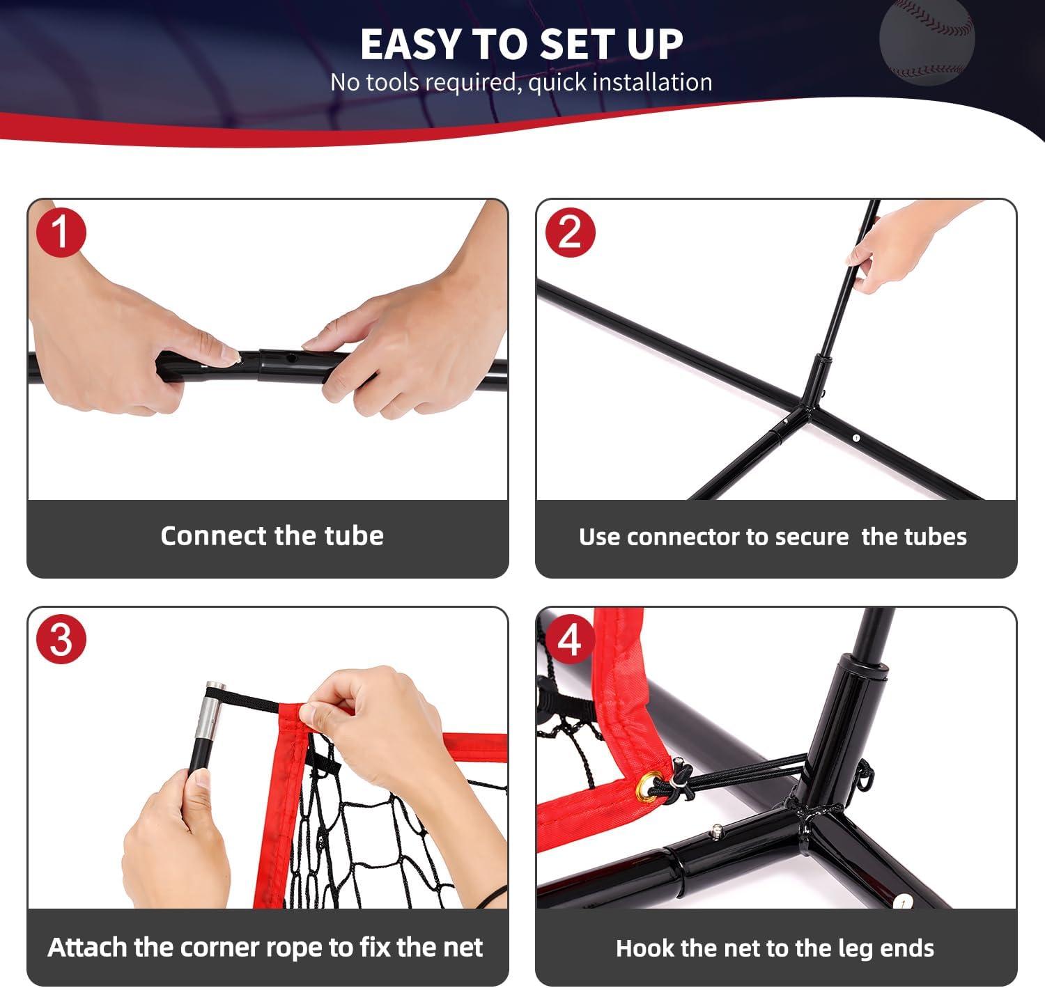 Sturdy Construction: The 7-ply knotless thickened polyester mesh makes the net more durable and resistant to wear and tear, even with the hardest hits and throws. Crafted with premium nylon and a heavy-duty steel rod, this baseball net can withstand the strong winds and high-speed impacts. Its reinforced fiberglass tubes with high flexibility provide good cushioning and maintain shape for long-term use, which is suitable for both indoor and outdoor environments