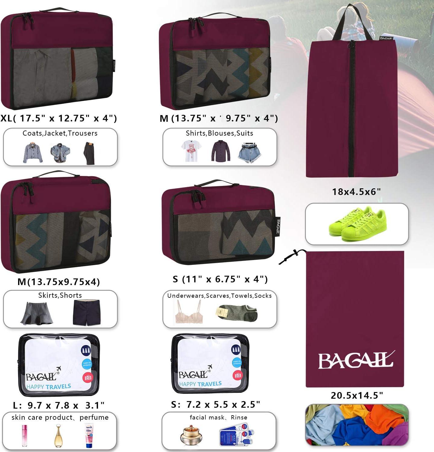 BAGAIL 8 Set/9 Set Packing Cubes Luggage Packing Organizer for Travel, Suitcase Packing Bags for Travel Accessories(Burgundy)