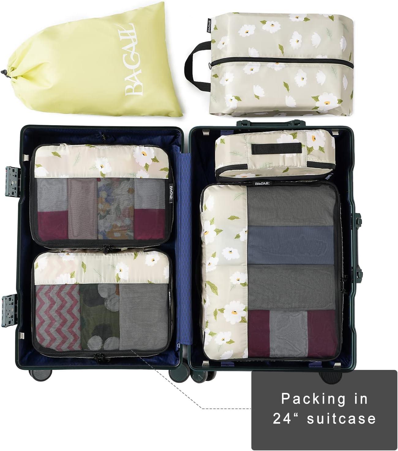 BAGAIL 8 Set/9 Set Packing Cubes Luggage Packing Organizer for Travel, Suitcase Packing Bags for Travel Accessories(Green Flower)