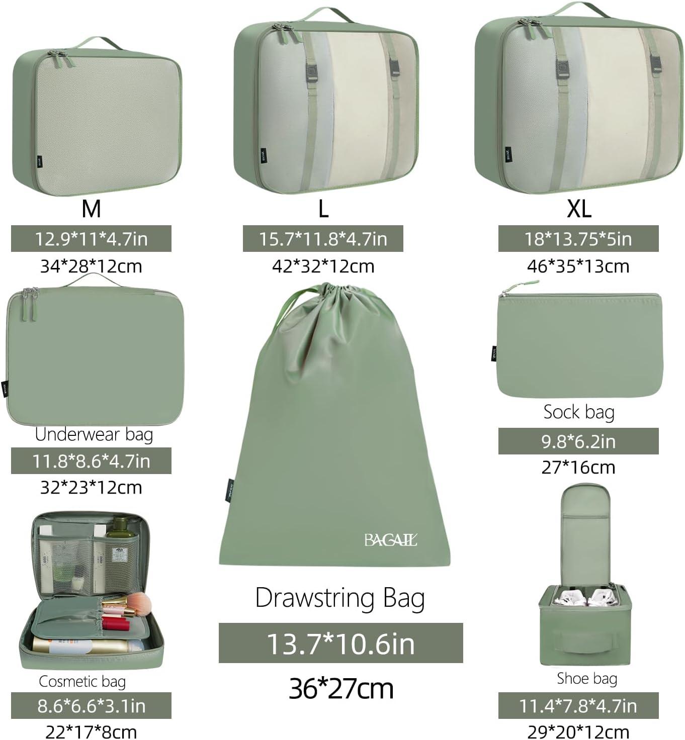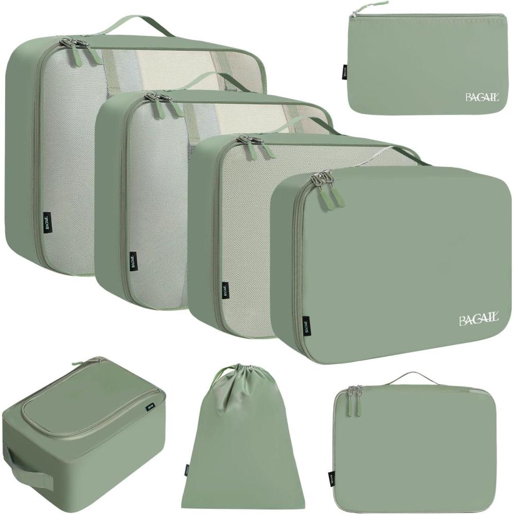 imageBAGAIL 8 Set Packing Cubes Luggage Packing Organizer Bags for Travel AccessoriesBlack FloralMatcha Green