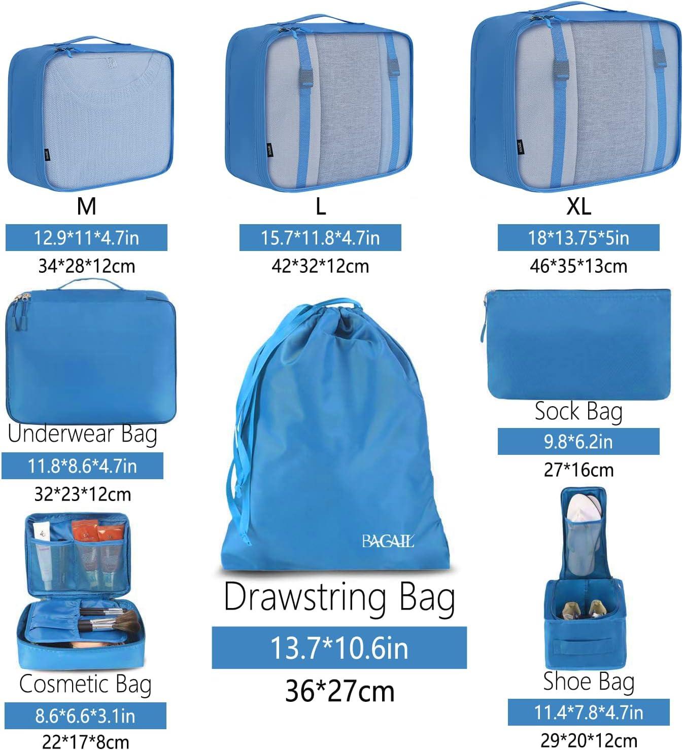 BAGAIL 8 Set Packing Cubes Luggage Packing Organizers for Travel Accessories-Pewter Color(Light Blue)