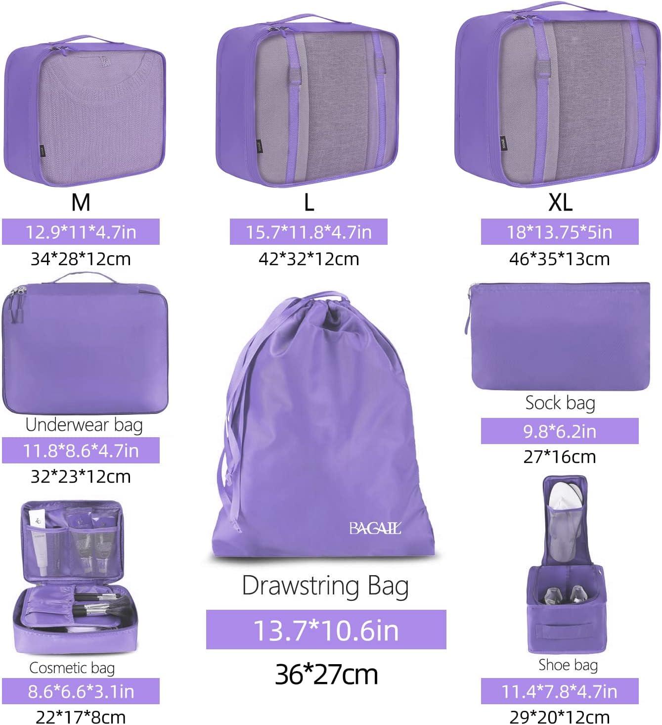 BAGAIL 8 Set Packing Cubes Luggage Packing Organizers for Travel Accessories-Pewter Color(Light Purple)
