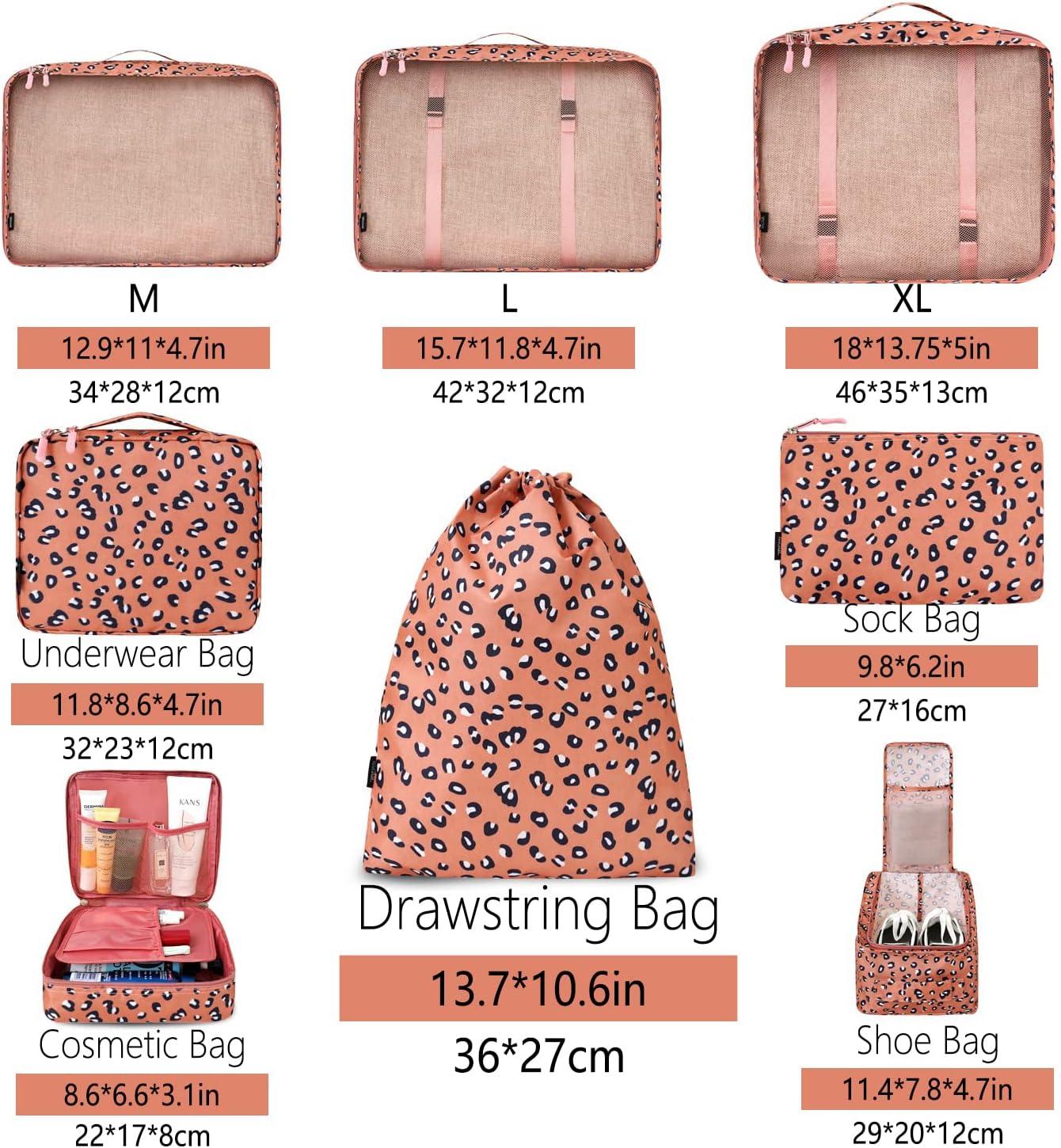 BAGAIL 8 Set Packing Cubes Luggage Packing Organizers for Travel Accessories-Pewter Color(Pink Leopard)