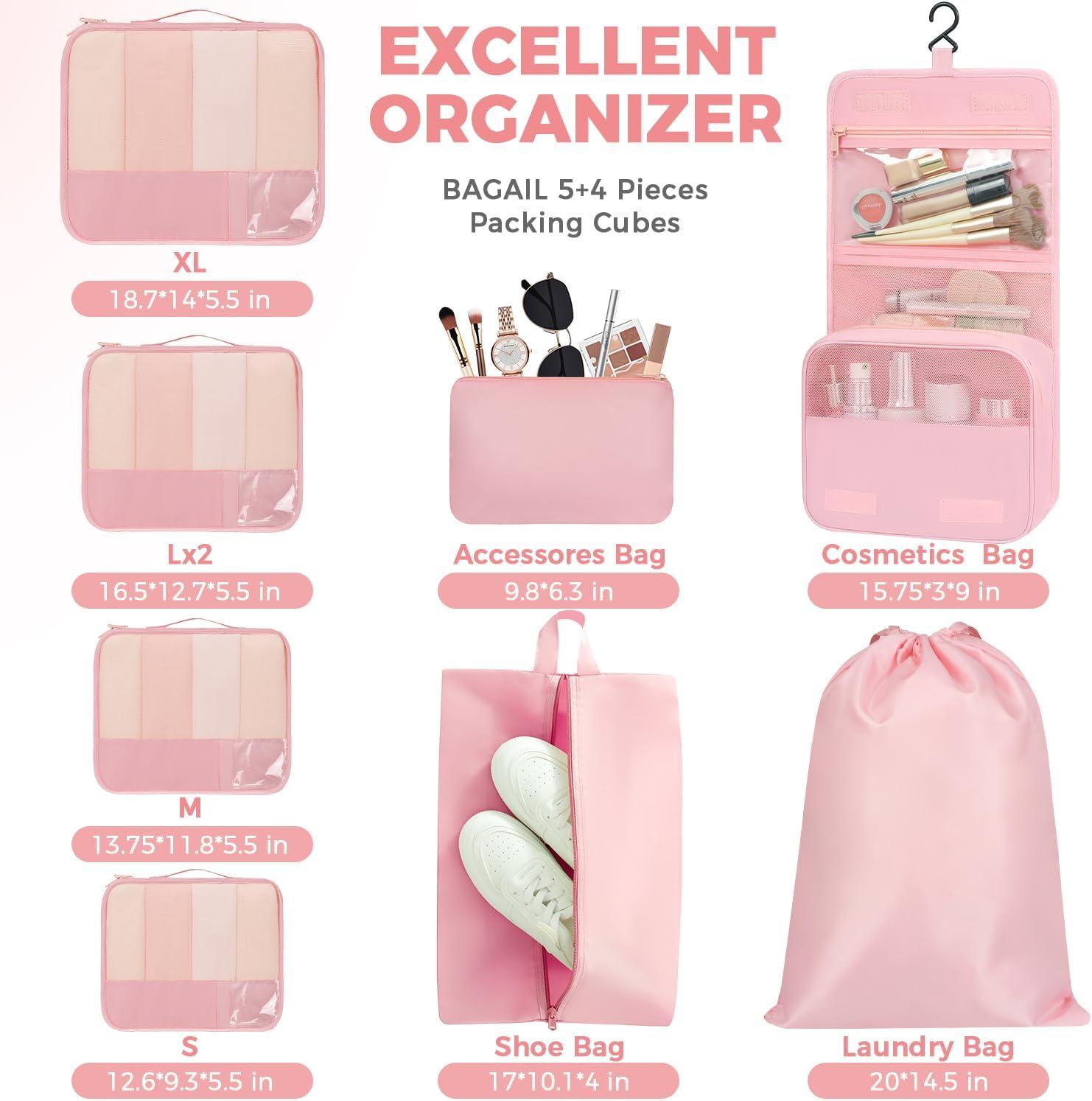 BAGAIL 9 Set Packing Cubes Luggage Packing Organizers for Travel Accessories(Pink)