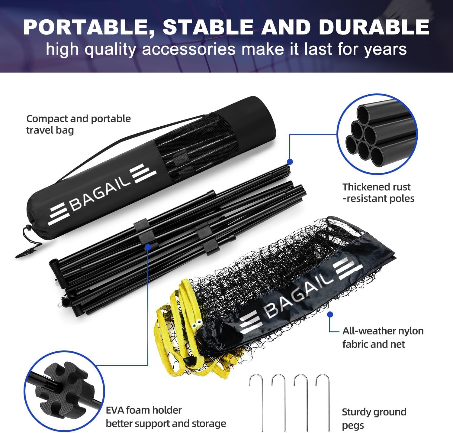 Highly Portable: Hold the posts in order by foam pads after disassemble, fold the net into suitable size, then pack them in the lightweight nylon bag included. BAGAIL badminton net is extremely portable and easy to transport.