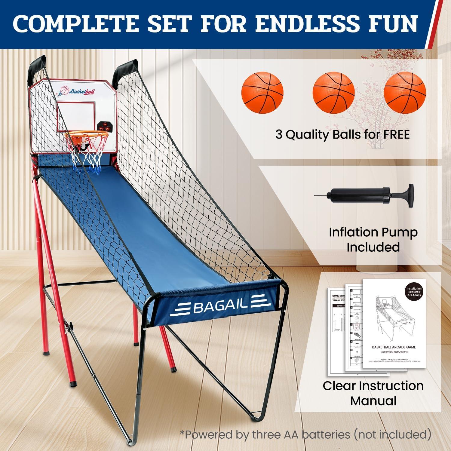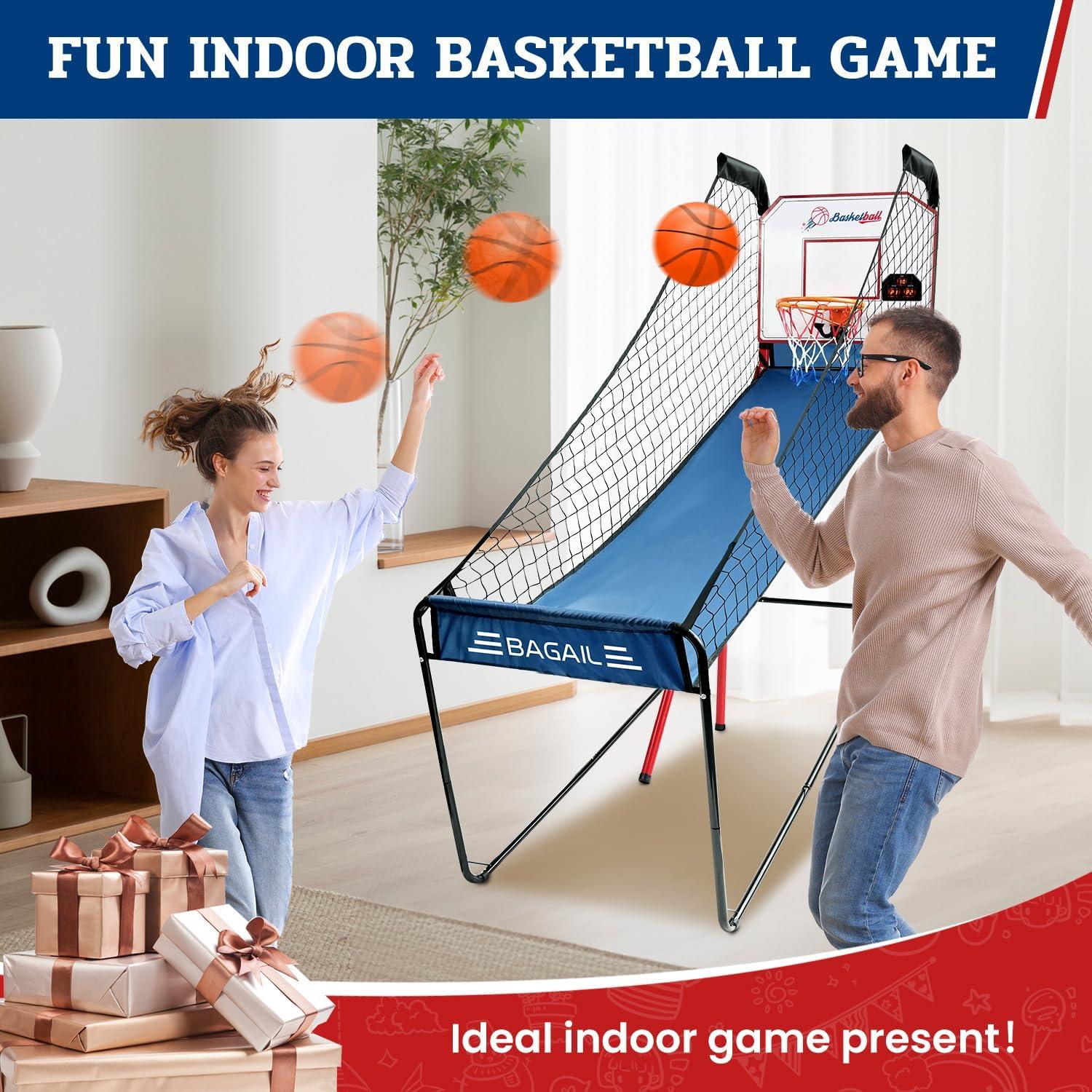 Dual Shot Basketball Arcade – BAGAIL foldable electronic basketball game features dual hoops for fun multiplayer games. It's the ideal companion for family entertainment or party, and makes for an excellent birthday or holiday present for kids