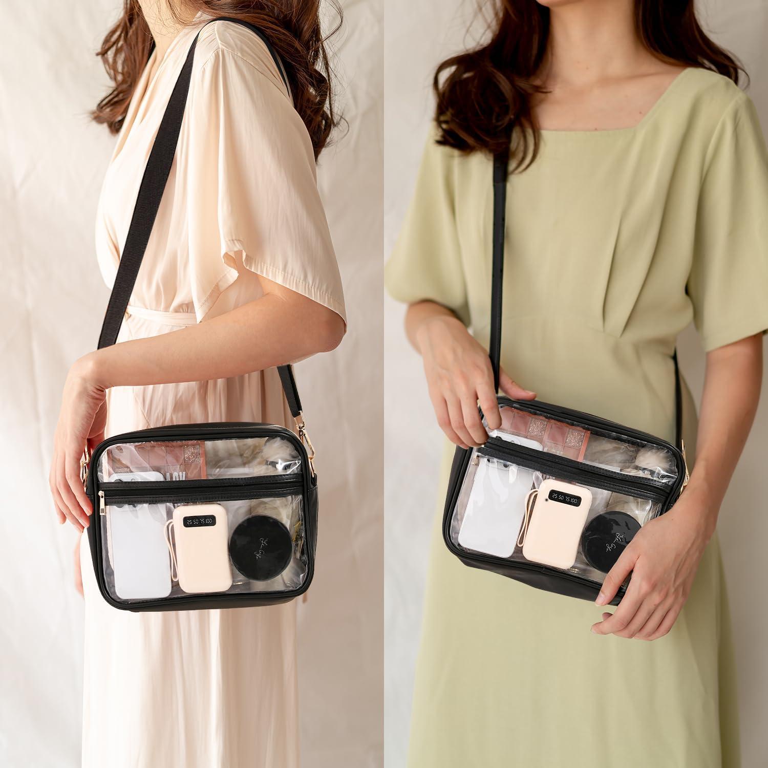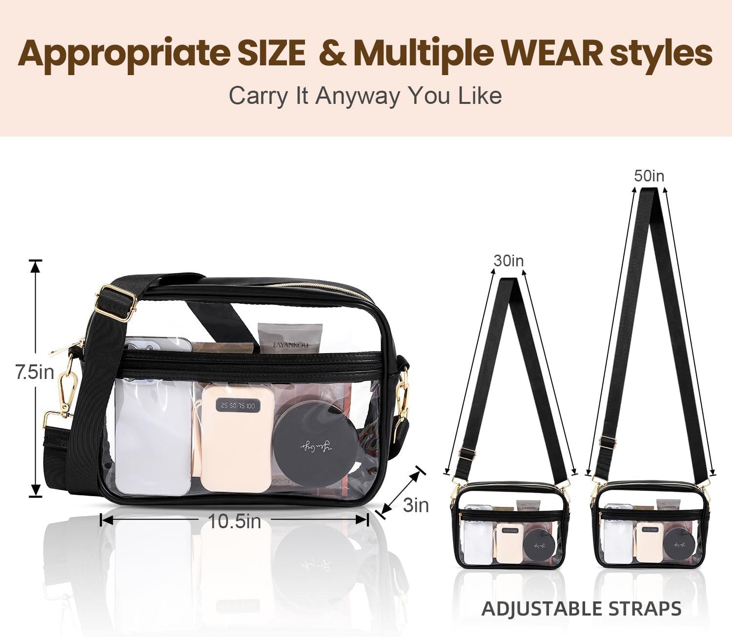 BAGAIL Clear Bag Stadium Approved Crossbody Shoulder Messenger Clear Purse with Adjustable Strap(03black)