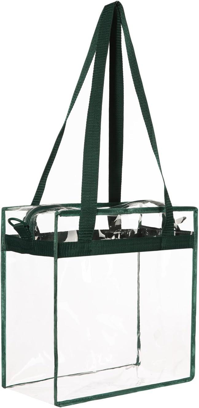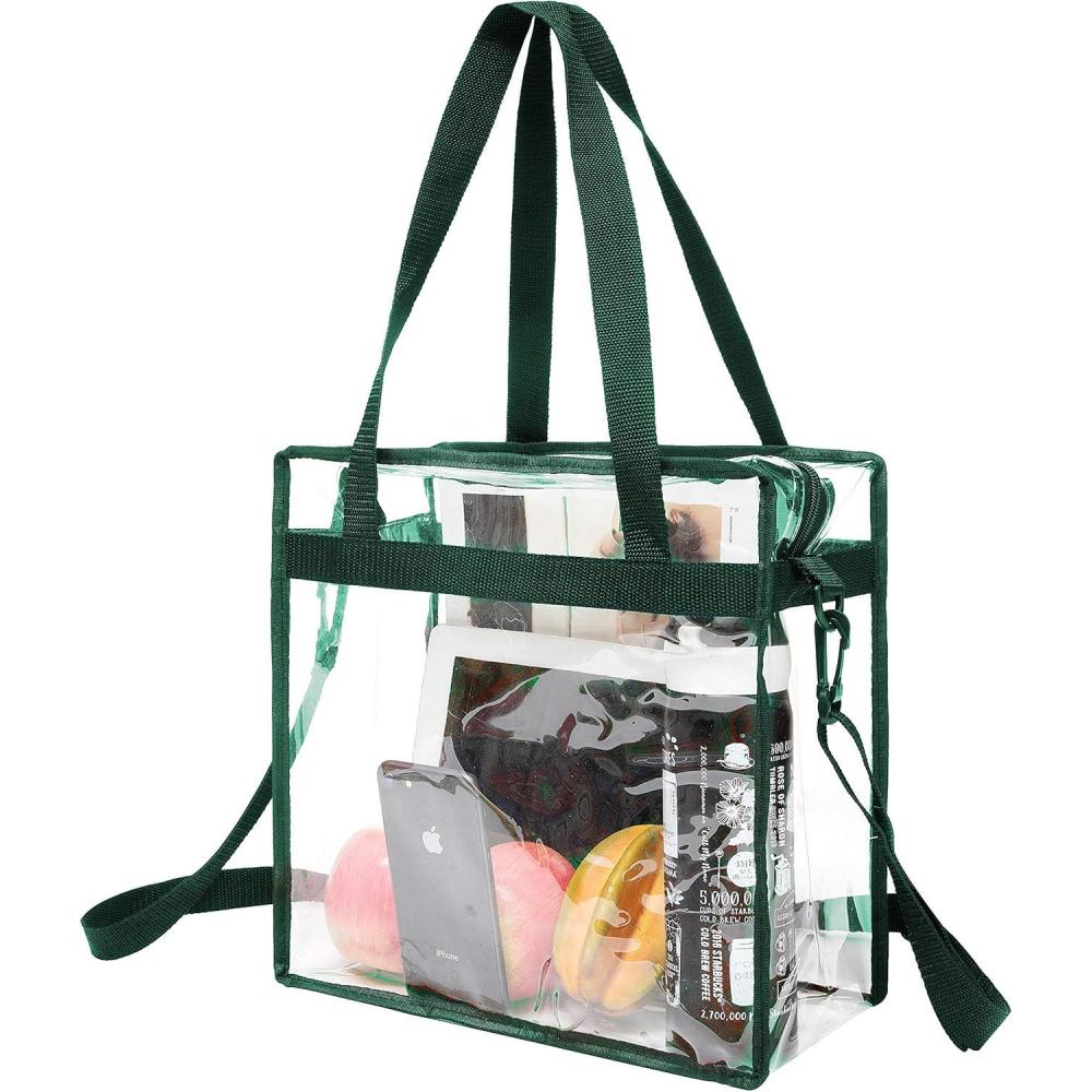 BAGAIL Clear Bags 12x6x12 Stadium Approved Clear Tote Bag with Zipper Closure Crossbody Shoulder Bag with Adjustable Strap(Green)