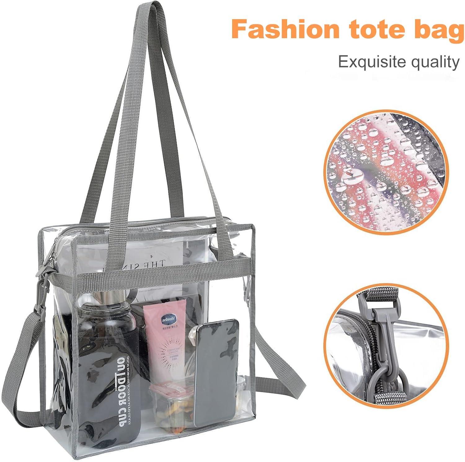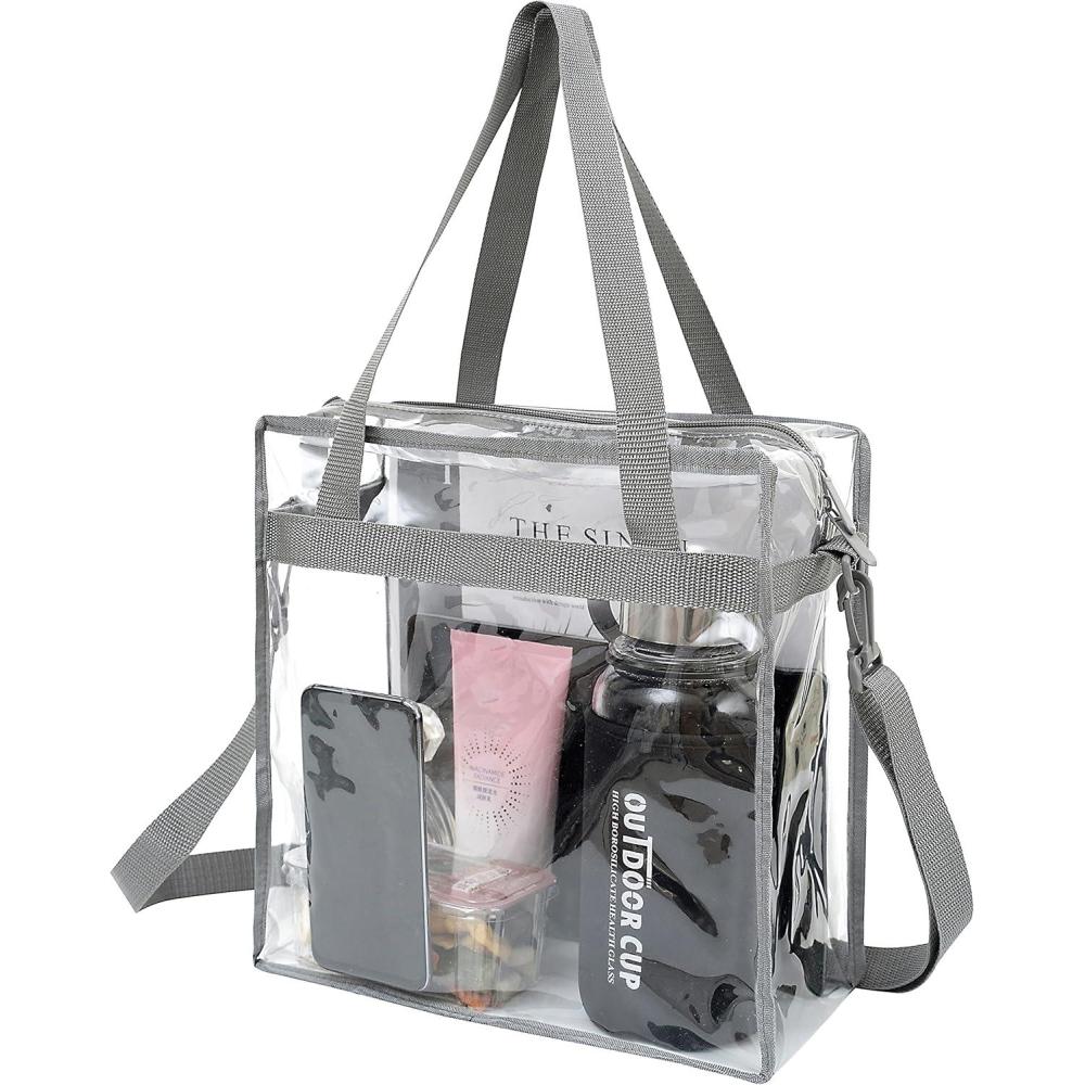 imageBAGAIL Clear Bags 12x6x12 Stadium Approved Clear Tote Bag with Zipper Closure Crossbody Shoulder Bag with Adjustable StrapGrey