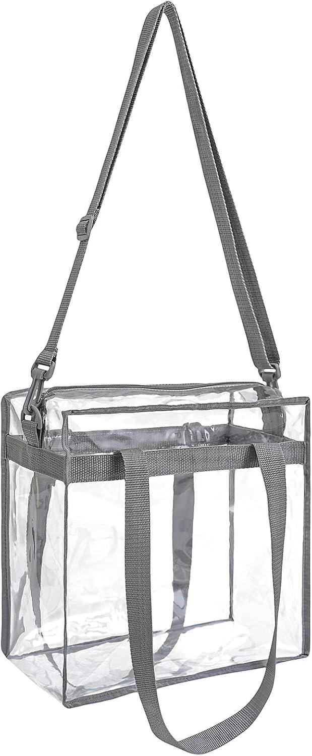 BAGAIL Clear Bags 12x6x12 Stadium Approved Clear Tote Bag with Zipper Closure Crossbody Shoulder Bag with Adjustable Strap(Grey)
