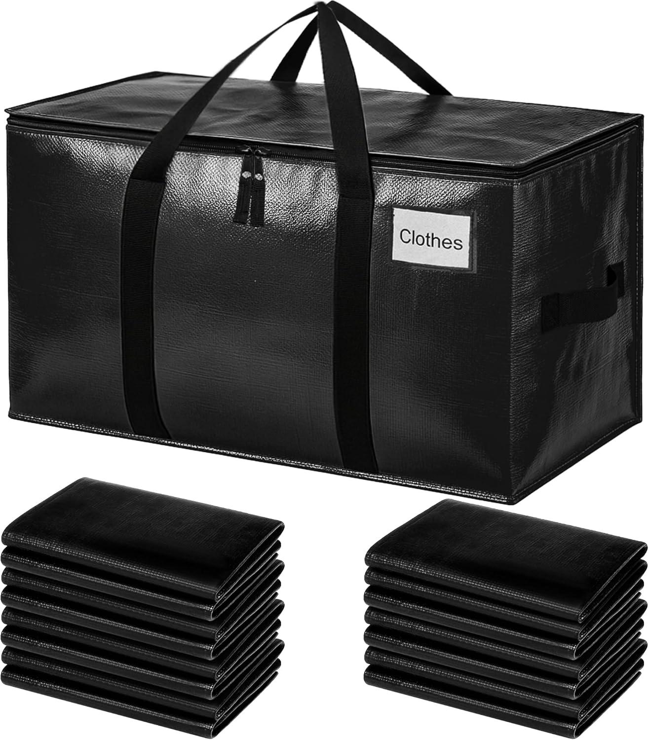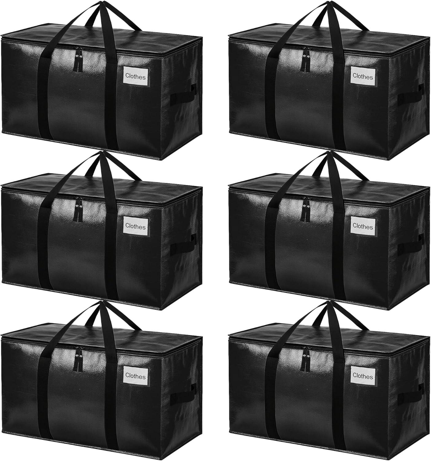 BAGAIL Heavy Duty Moving Bags with Strong Handle, Extra Large Moving Boxes, Storage Tote for Clothes, College Moving Supplies(Clear, 6 Pack)(Black)