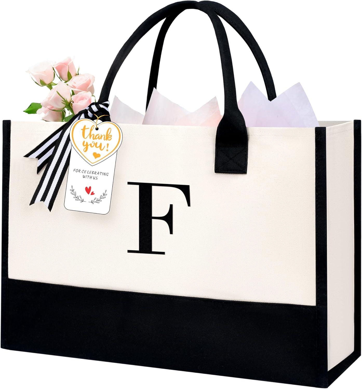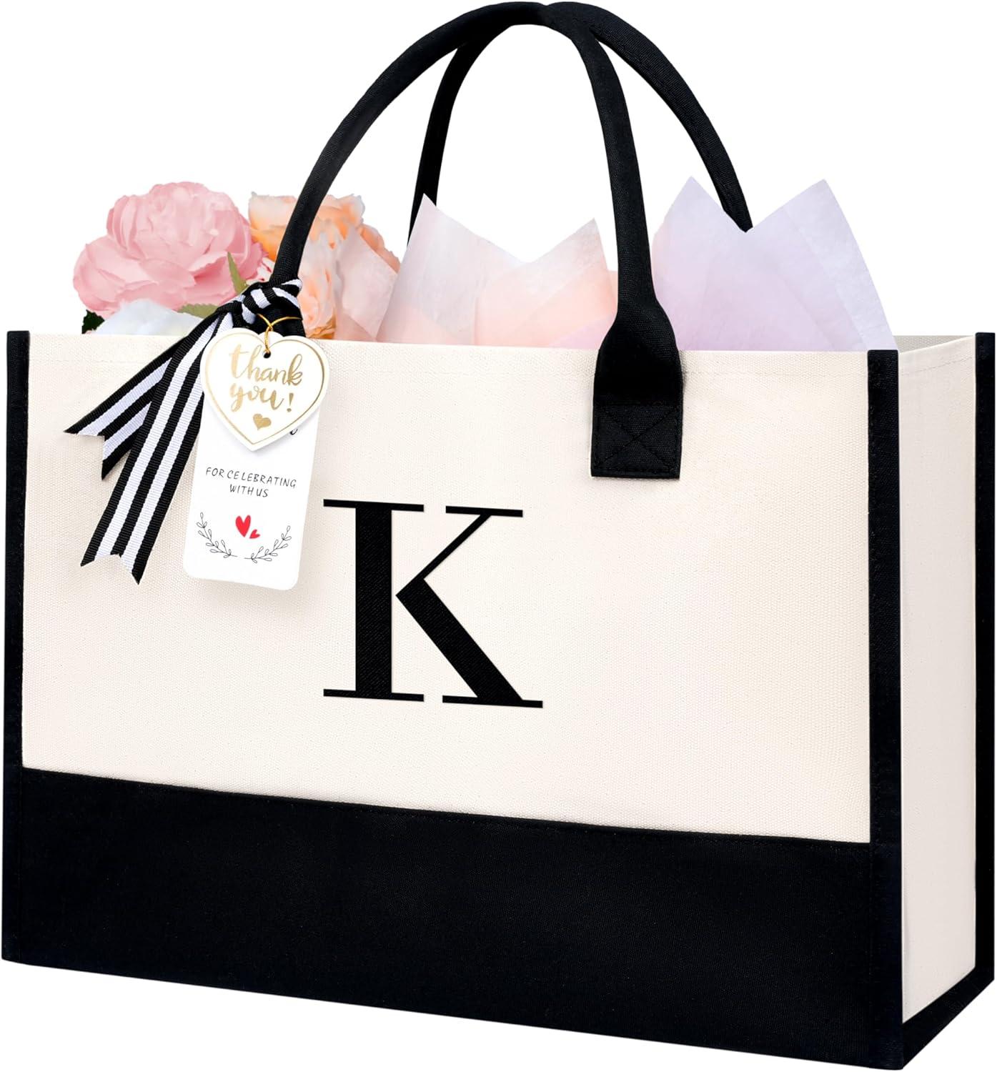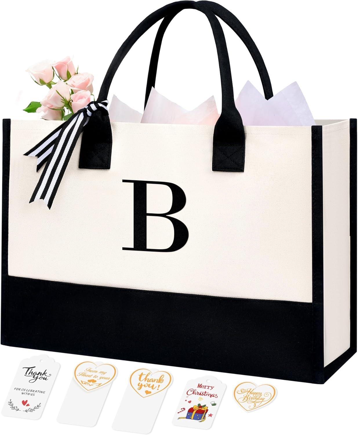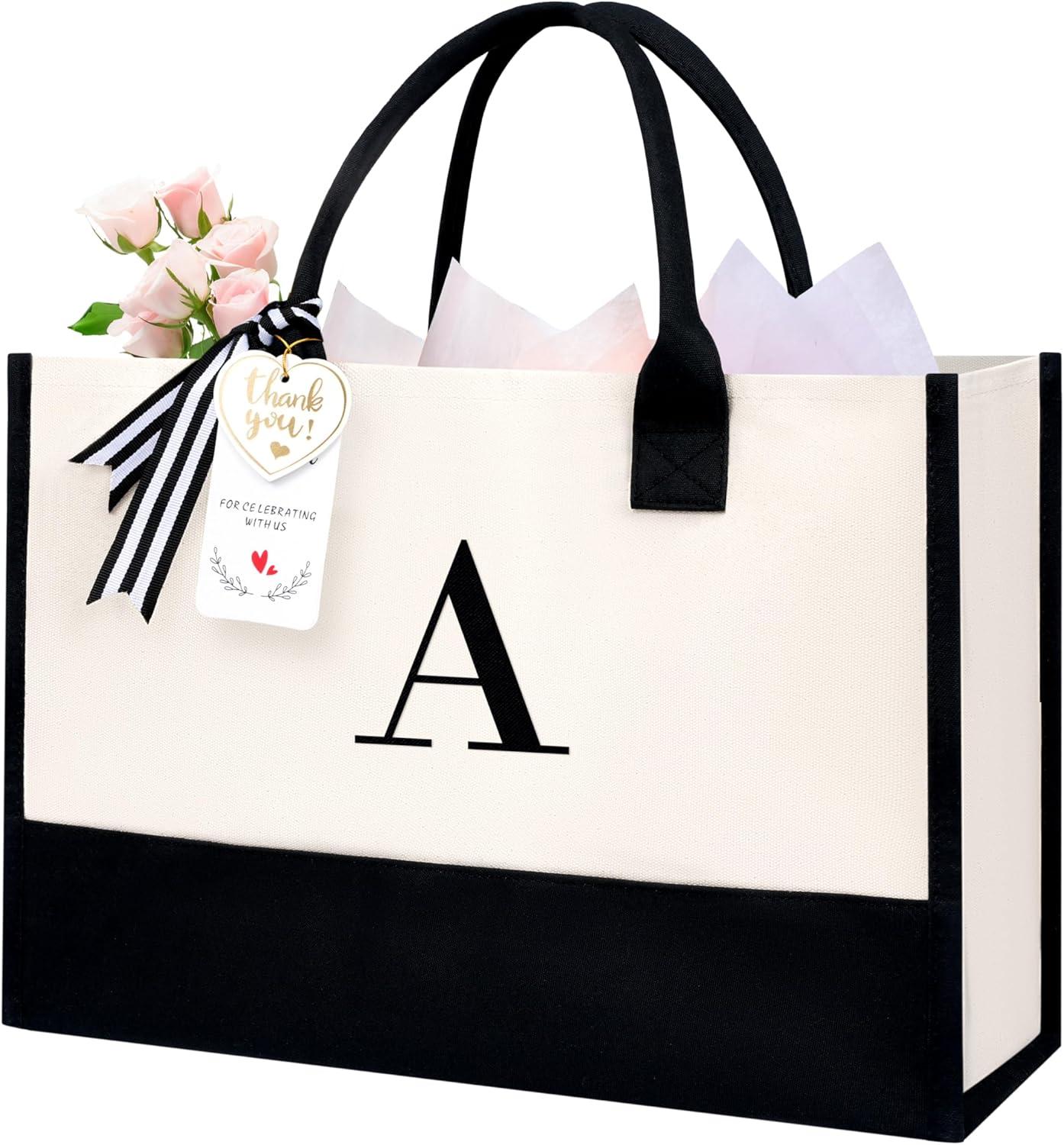 BAGAIL Initial Tote Bag, Personalized Birthday Gifts for Women, Teacher, Friends, Mom, Wedding, Monogrammed Beach Bag