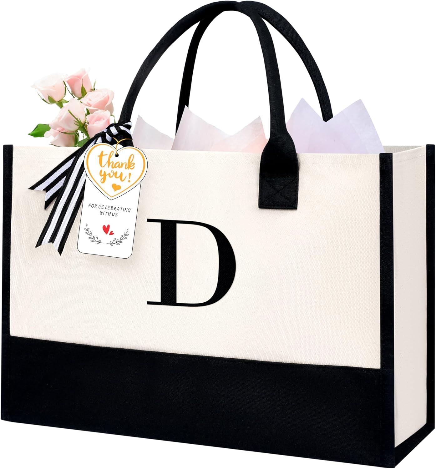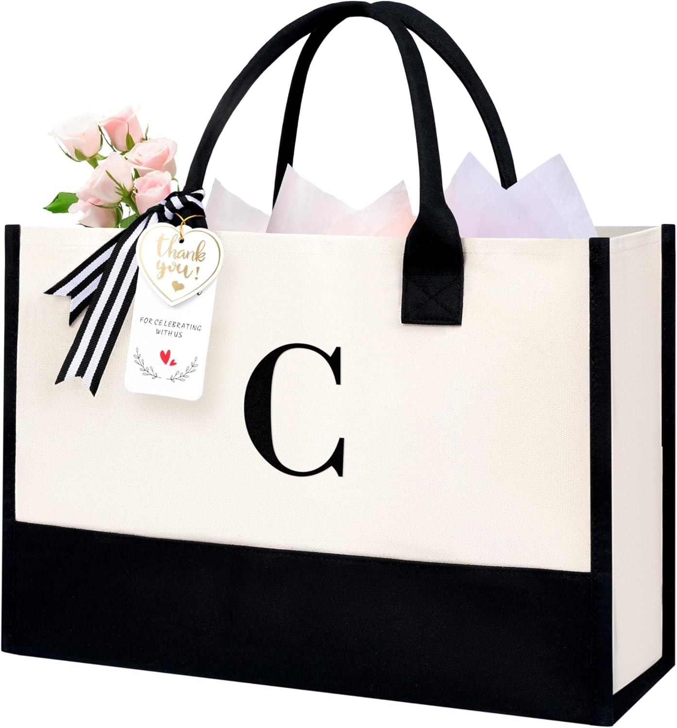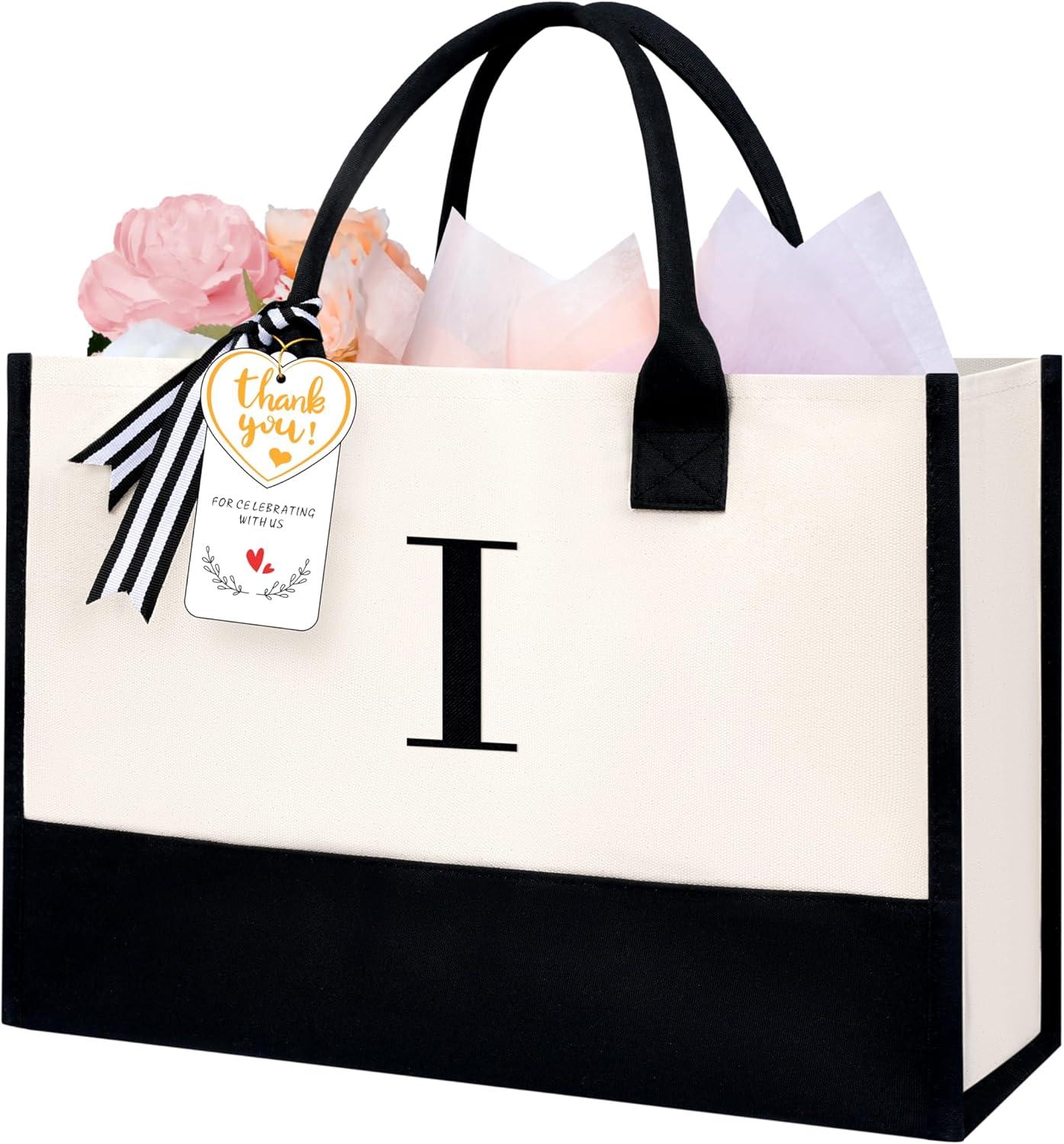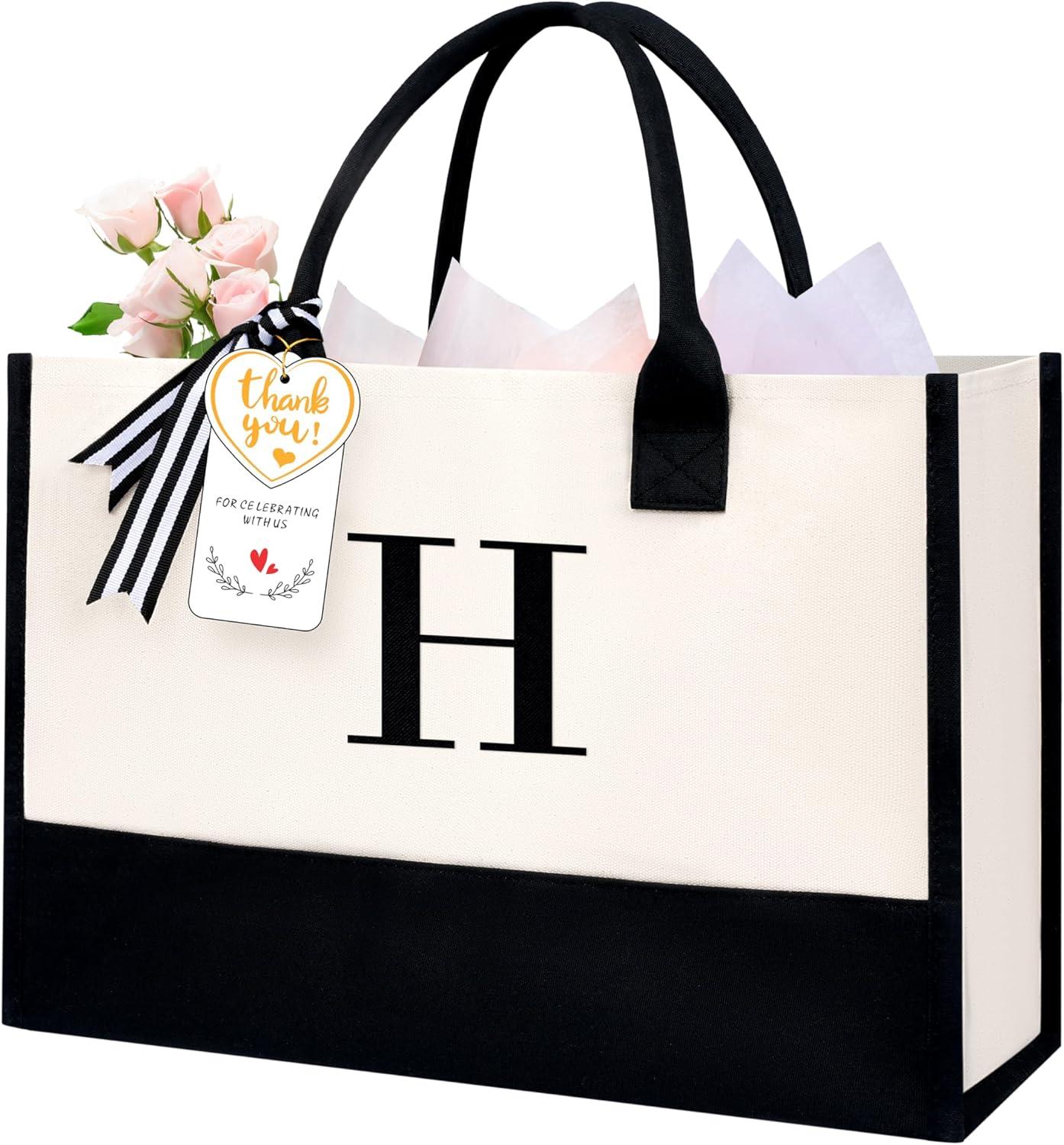 BAGAIL Initial Tote Bag, Personalized Birthday Gifts for Women, Teacher, Friends, Mom, Wedding, Monogrammed Beach Bag