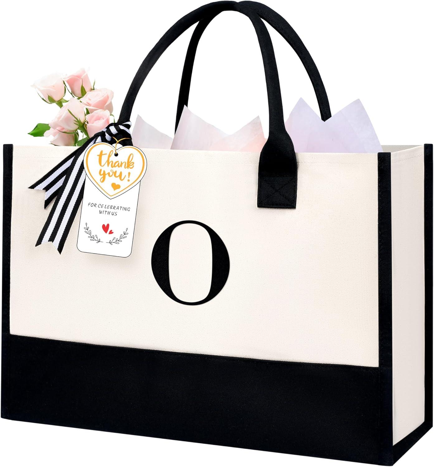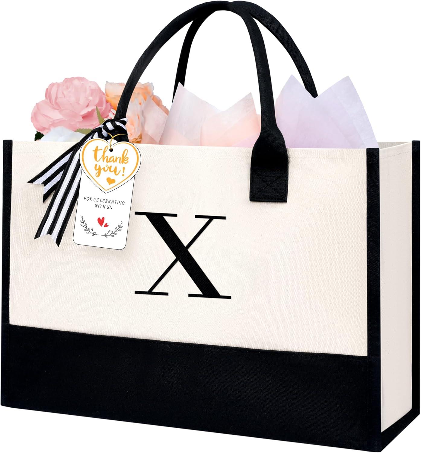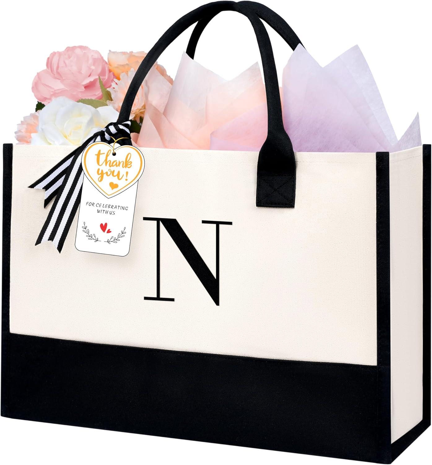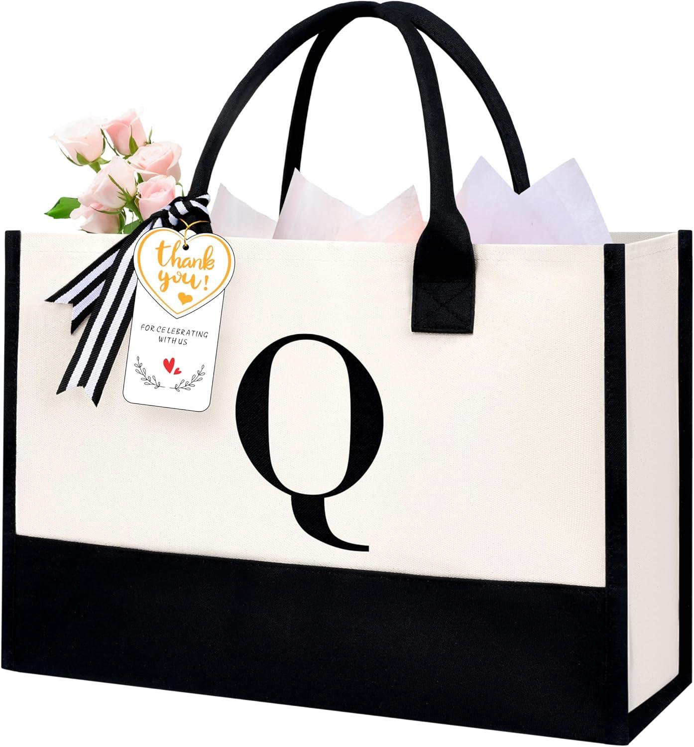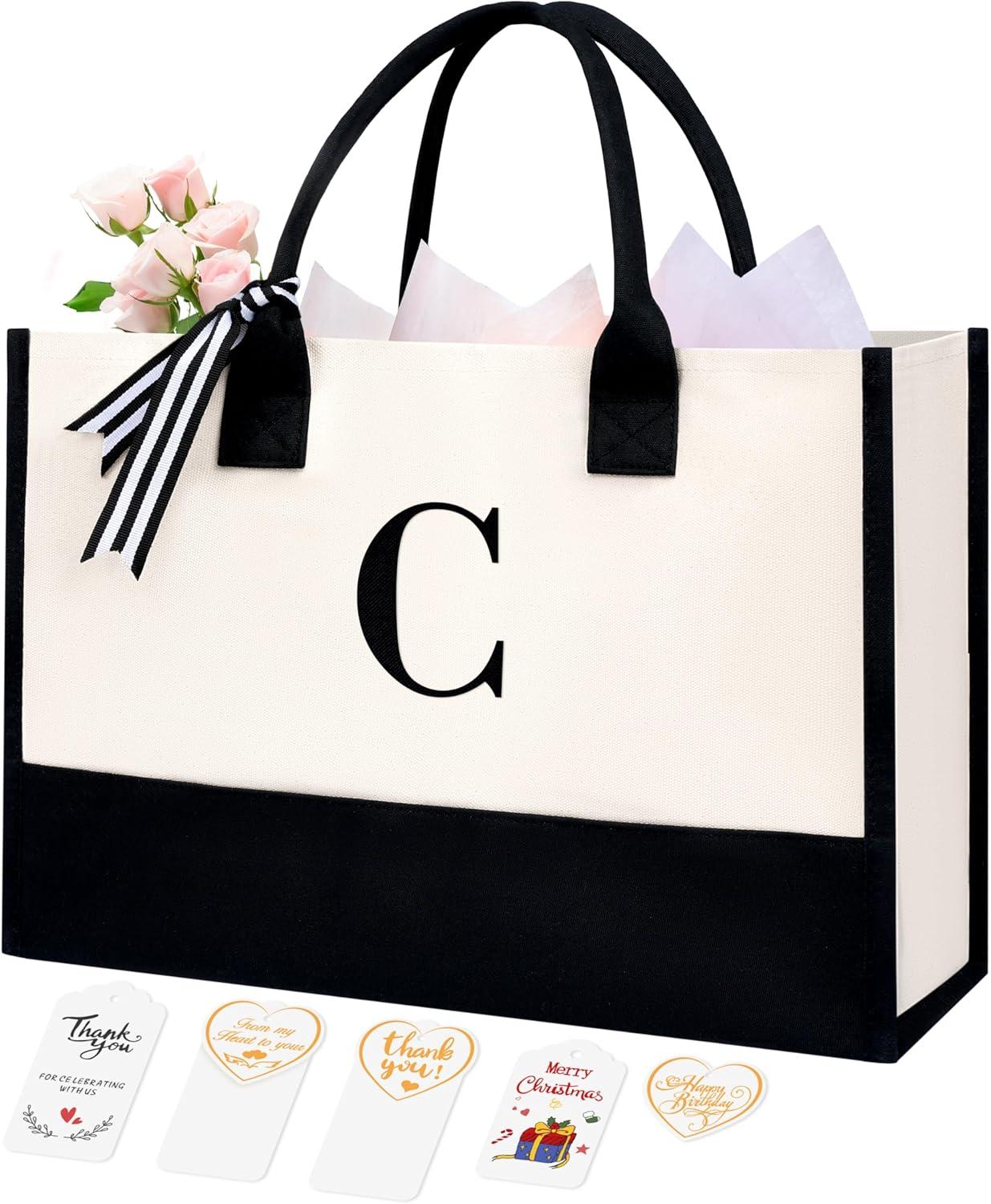 BAGAIL Initial Tote Bag, Personalized Birthday Gifts for Women, Teacher, Friends, Mom, Wedding, Monogrammed Beach Bag