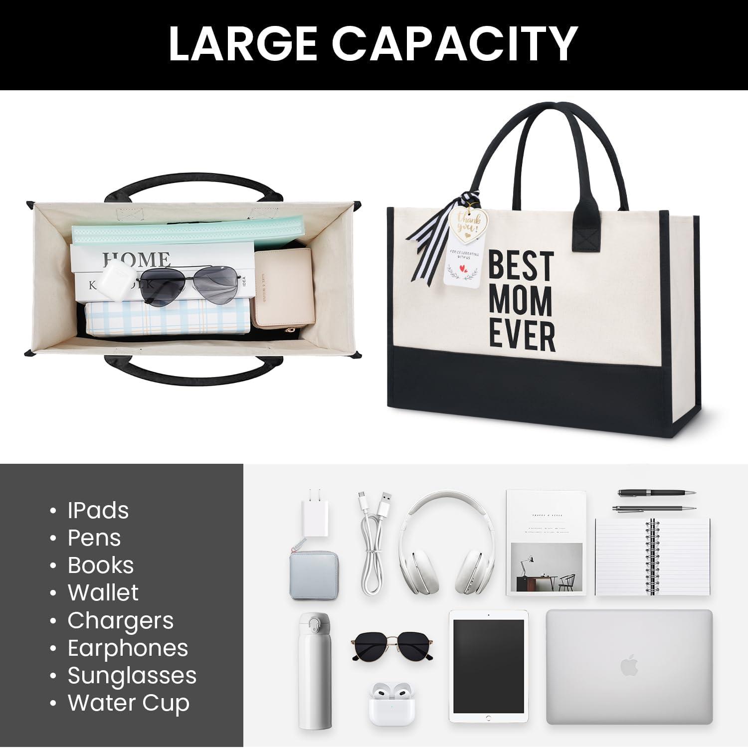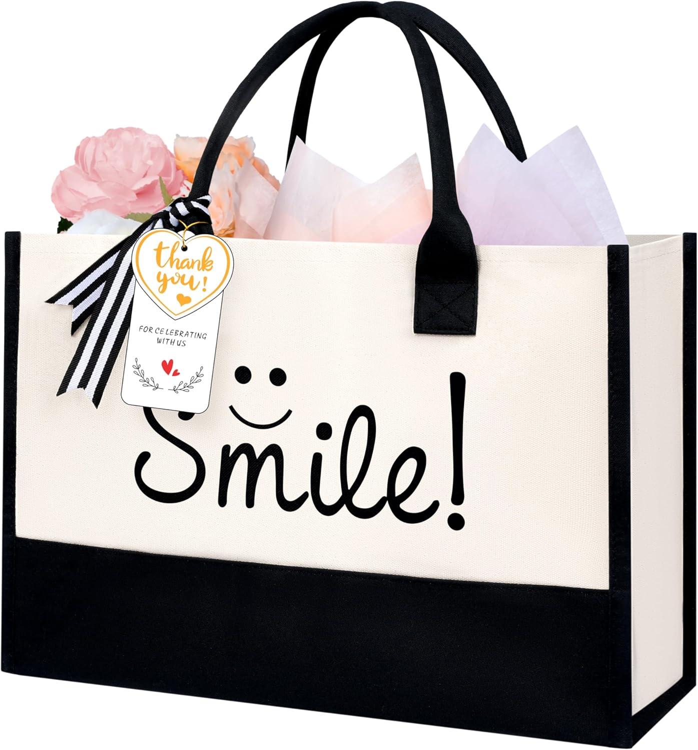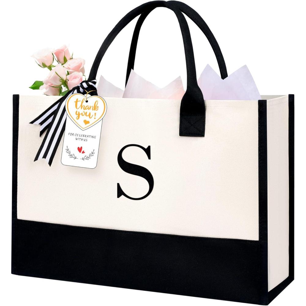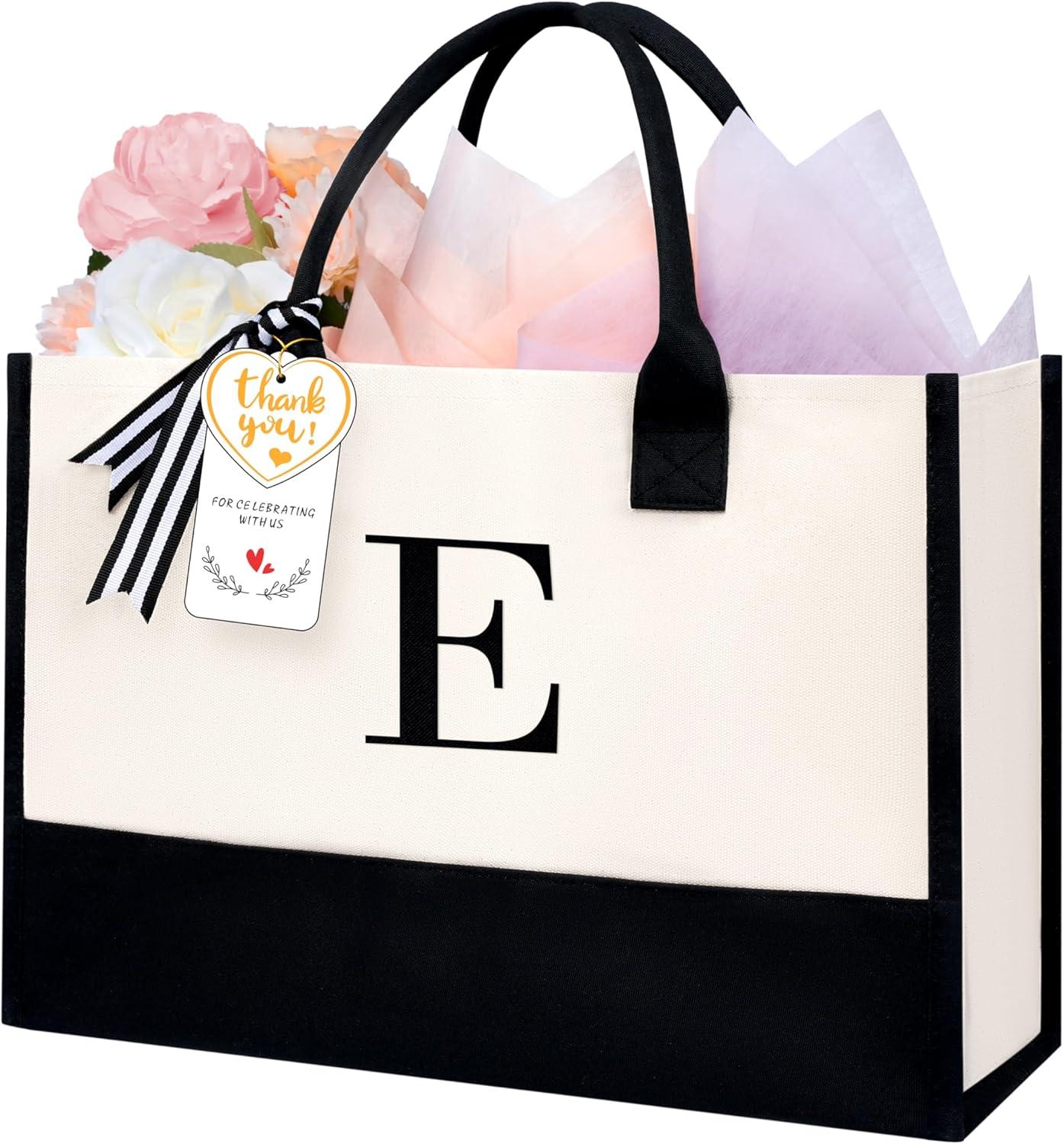 BAGAIL Initial Tote Bag, Personalized Birthday Gifts for Women, Teacher, Friends, Mom, Wedding, Monogrammed Beach Bag