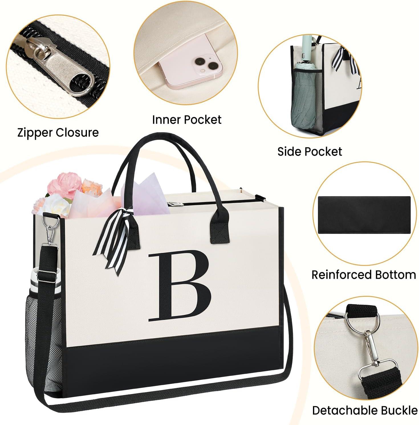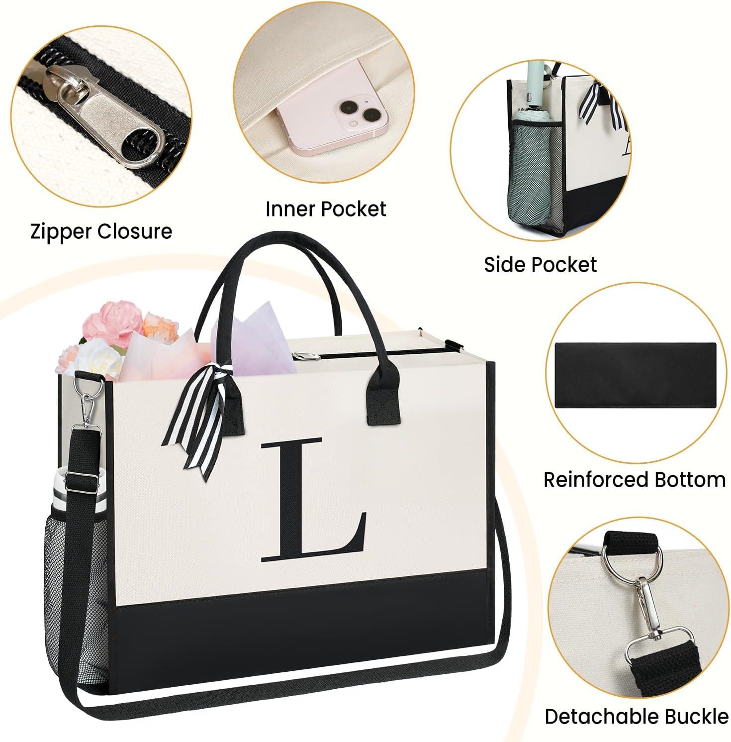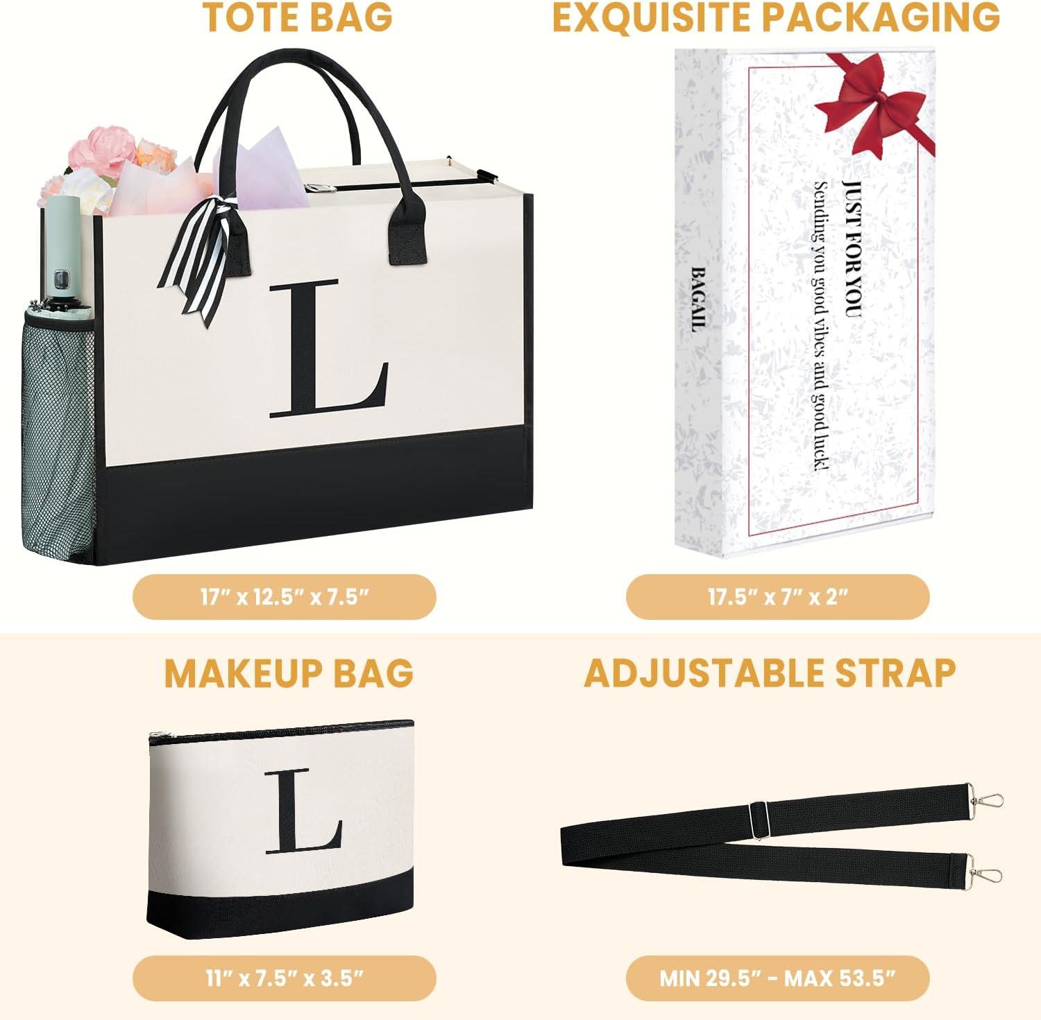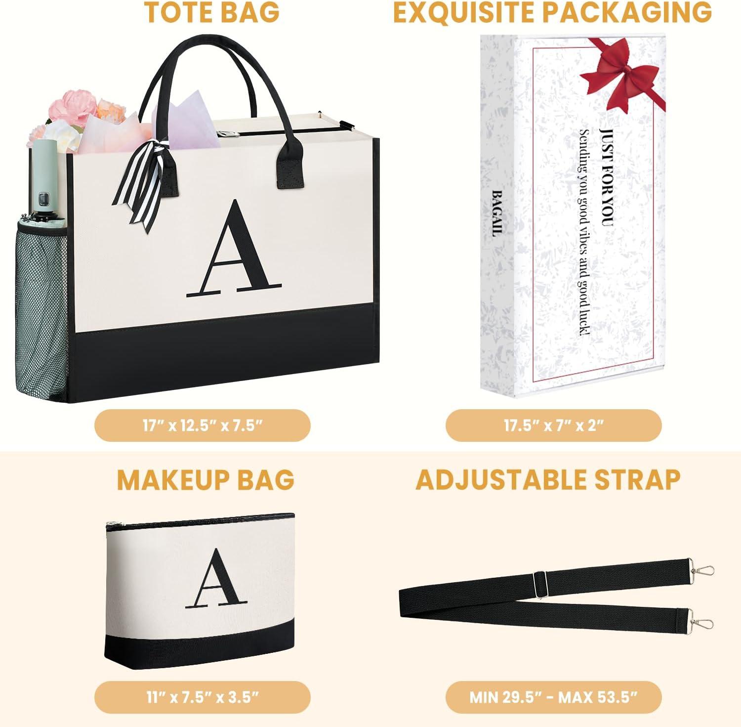 BAGAIL Initial Tote Bag, Personalized Birthday Gifts for Women, Teacher, Friends, Mom, Wedding, Monogrammed Beach Bag