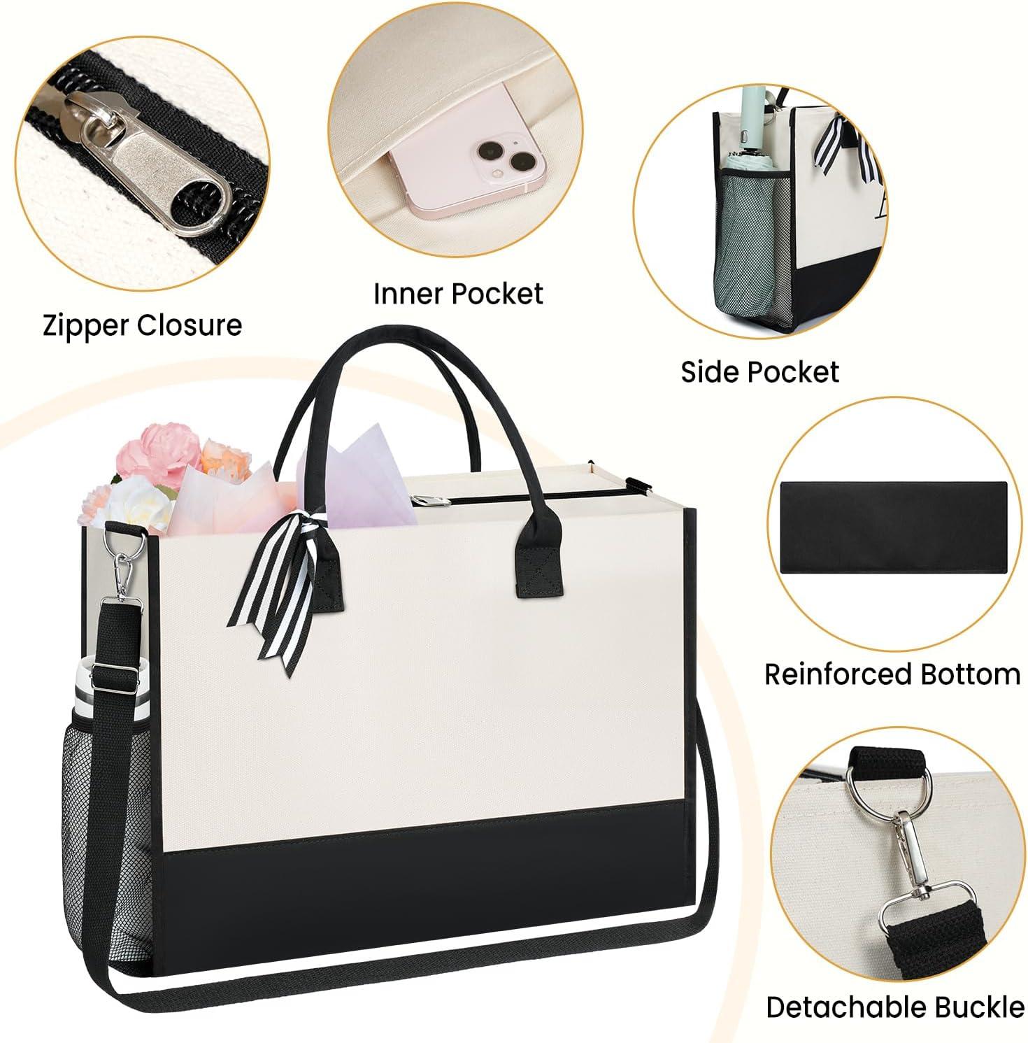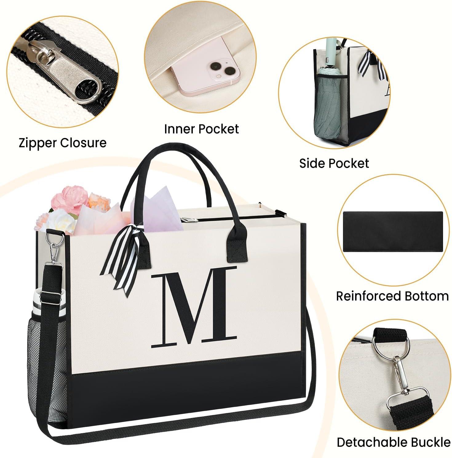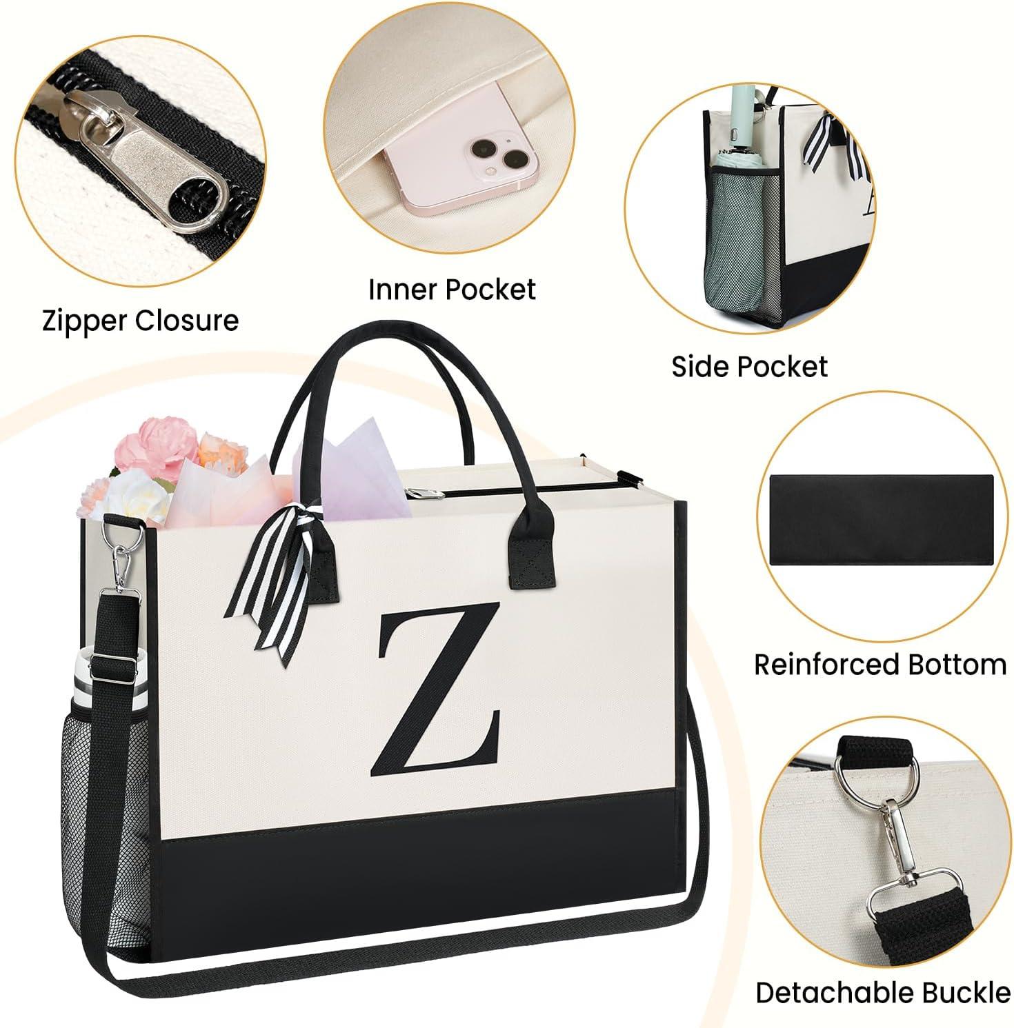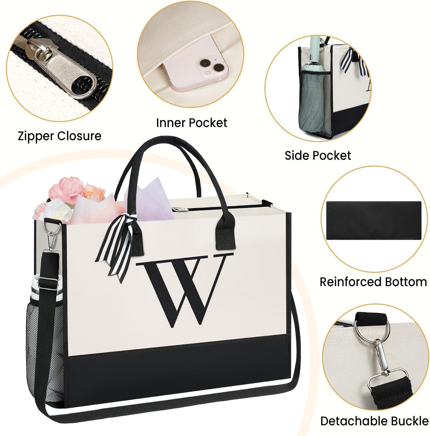 BAGAIL Initial Tote Bag, Personalized Birthday Gifts for Women, Teacher, Friends, Mom, Wedding, Monogrammed Beach Bag