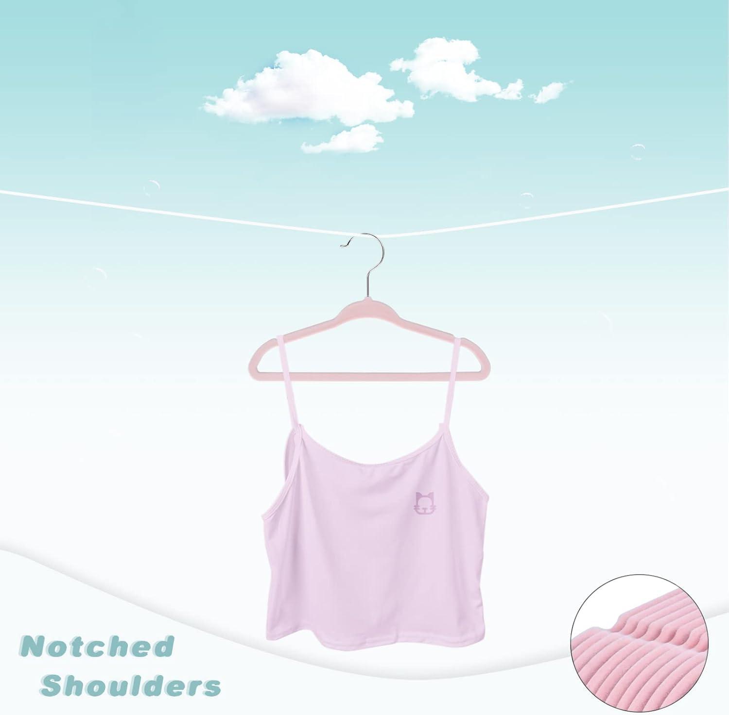 NON SLIP NOTCHES AND FLOCKED VELVET: Designed with 2 shoulder notches on both sides and covered with luxurious flocked velvet,Bagail children clothes hangers could grip delicate items such as camisoles, skirts and dresses with ease to prevent them from slipping off