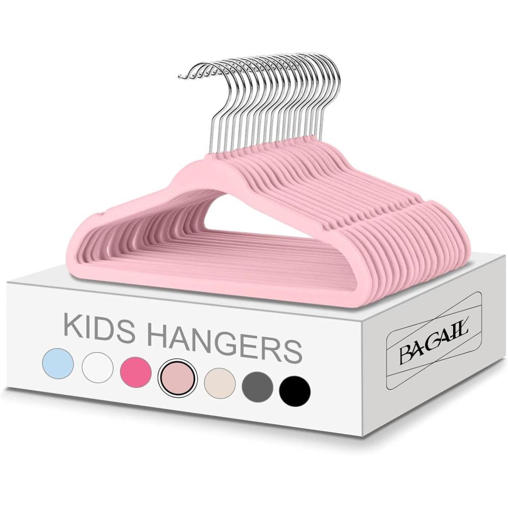 PREMIUM QUALITY: Constructed of 80% ABS plastic and 20% velvet flocking, Bagail baby clothing hangers are suitable for hanging infants/toddler’s most light clothes like pants,blouse,shirt,pajamas,skirts,etc.Heavy winter clothing are not recommended for this hanger