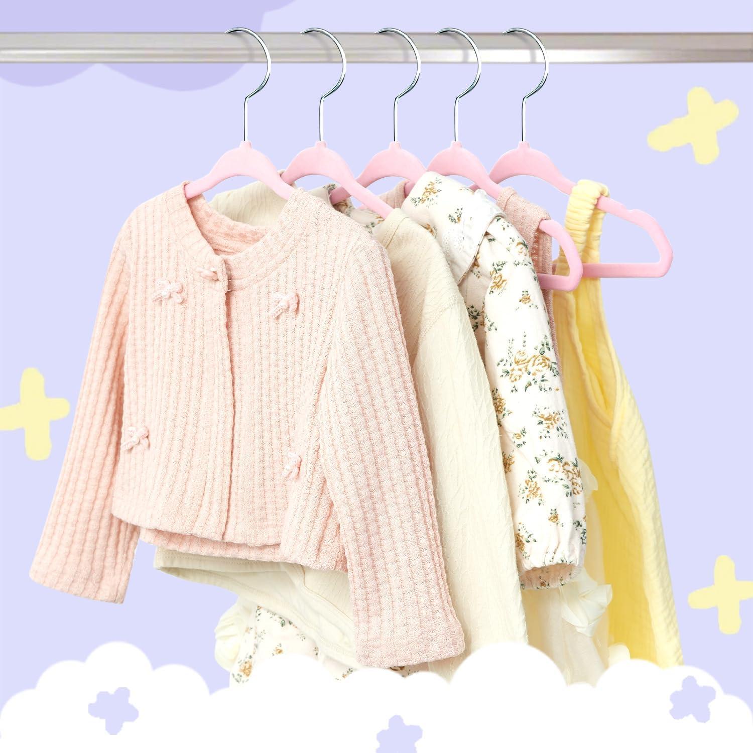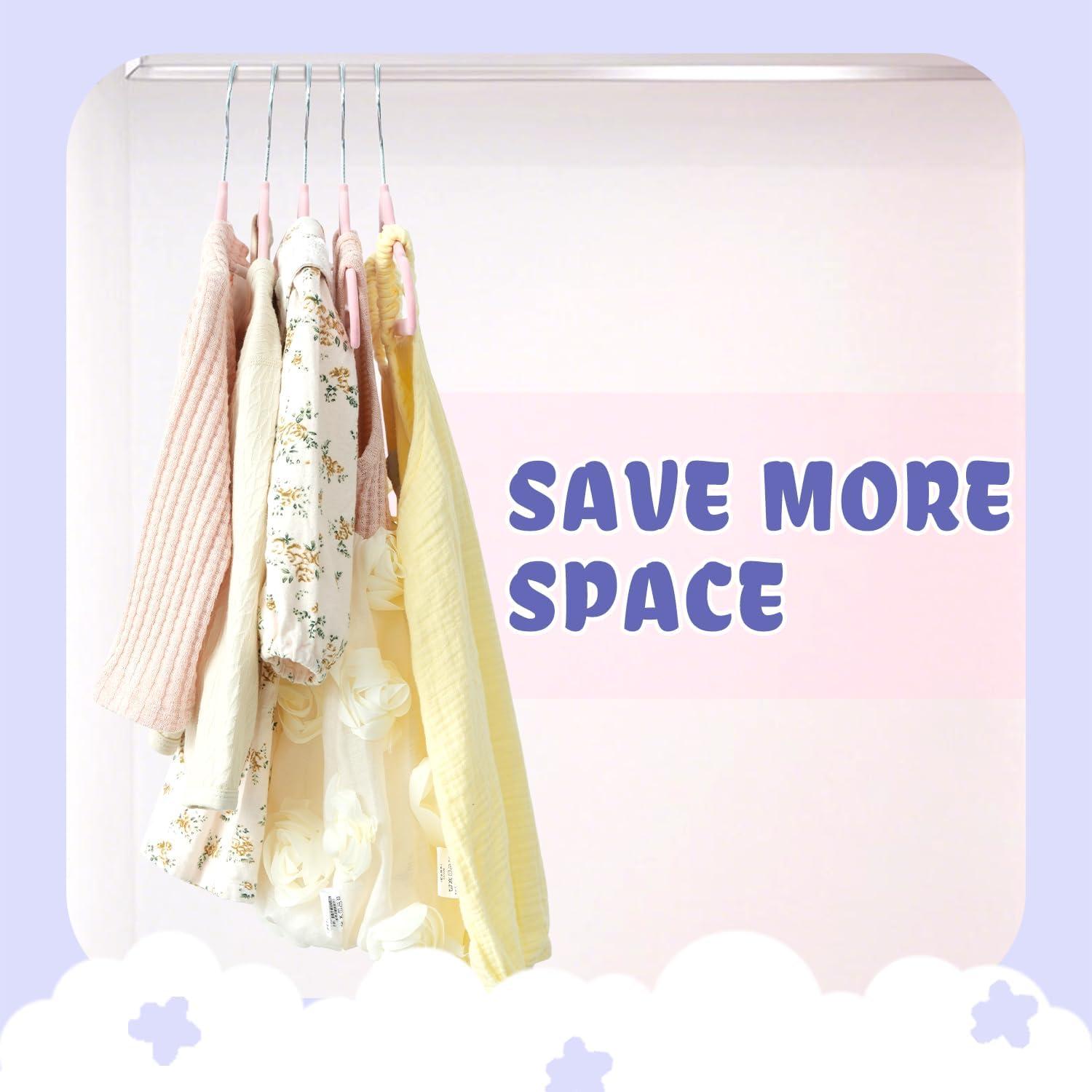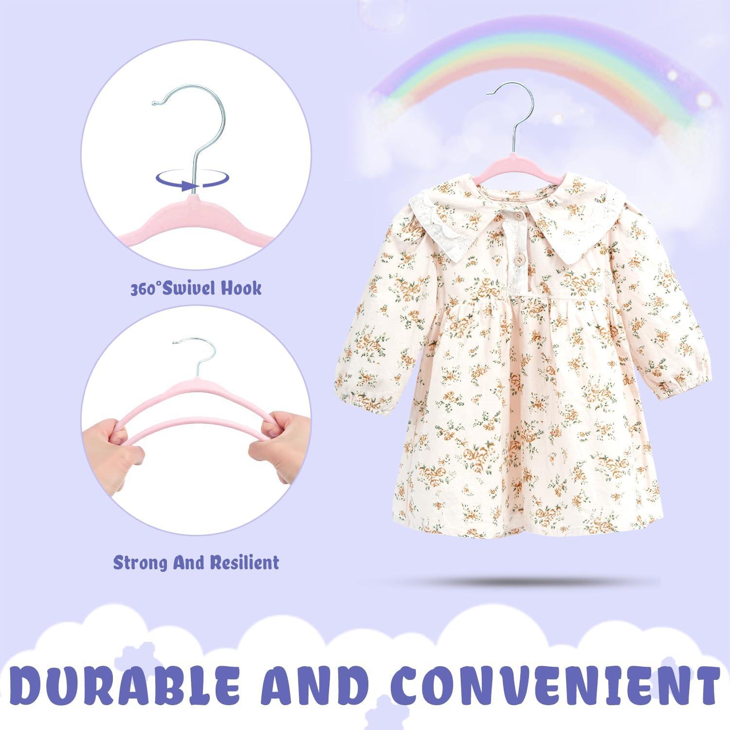 PREMIUM QUALITY: Constructed of 80% ABS plastic and 20% velvet flocking, Bagail baby clothing hangers are suitable for hanging infants/toddler’s most light clothes like pants,blouse,shirt,pajamas,skirts,etc.Heavy winter clothing are not recommended for this hanger