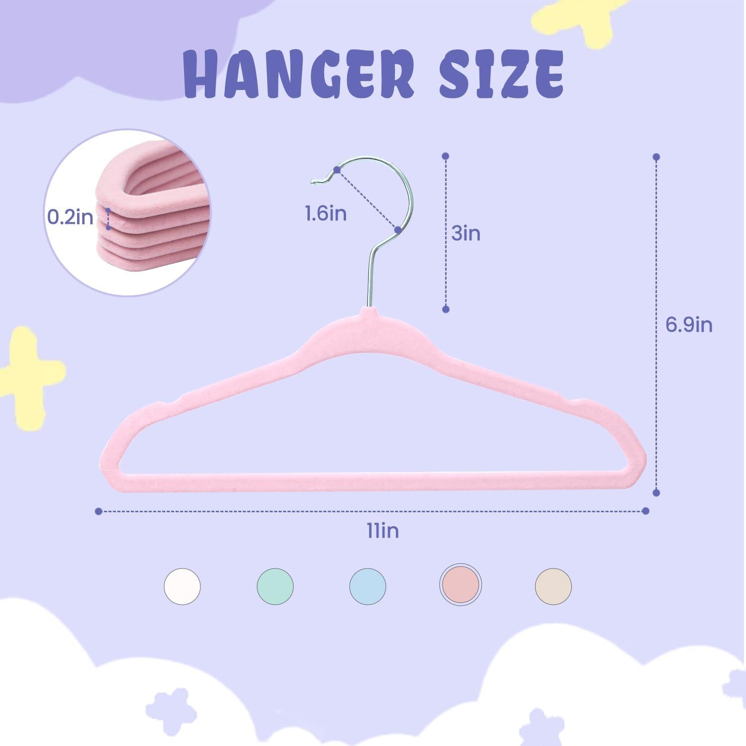 BAGAIL Kids Velvet Hangers 11 Inches Children’s Clothes Hangers Non-Slip Baby Hangers for Infant/Toddler (Black,50pack)(Pink)