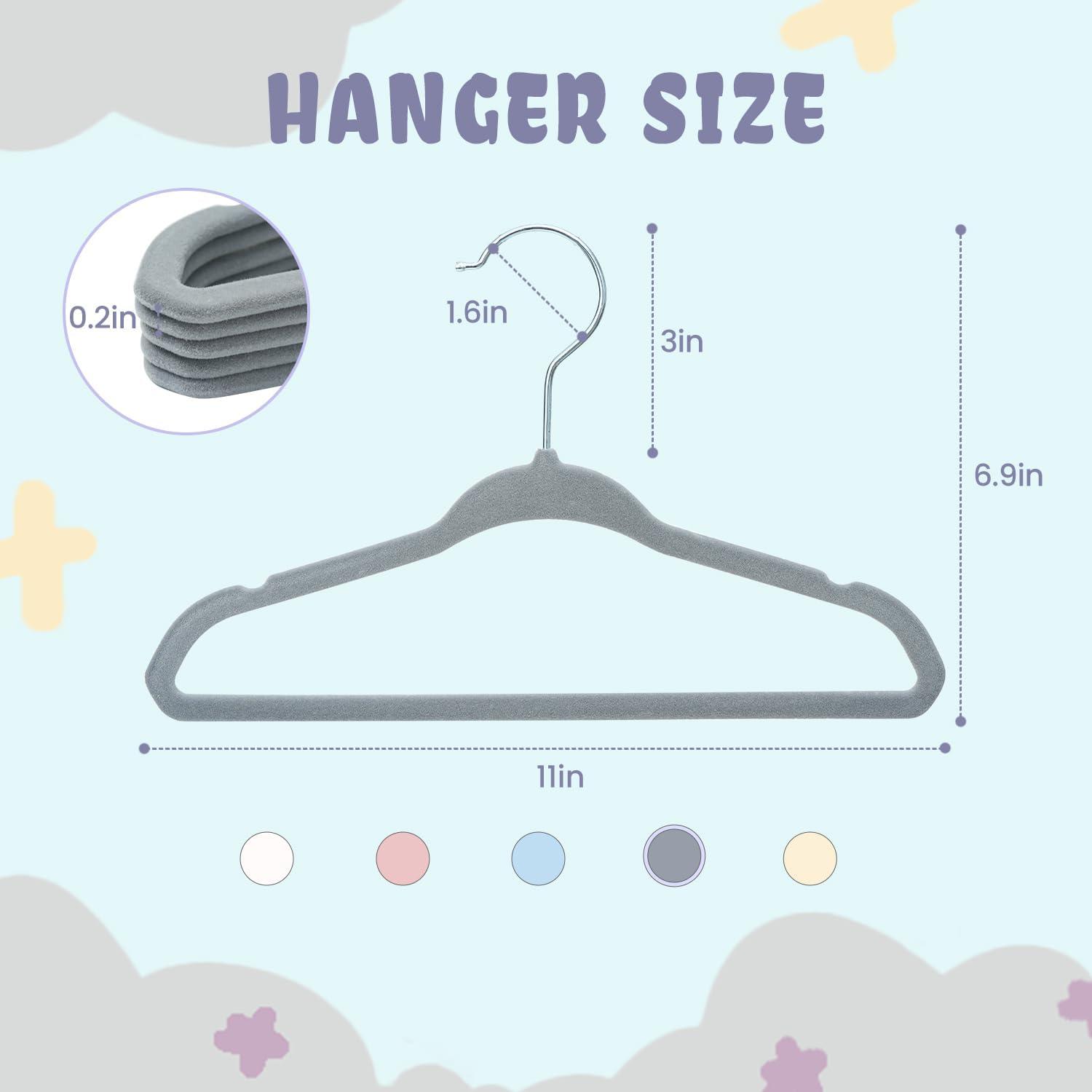 PREMIUM QUALITY: Constructed of 80% ABS plastic and 20% velvet flocking. Bagail baby clothing hangers are suitable for hanging infants/toddler’s most light clothes like pants,blouse,shirt,pajamas,skirts,etc.Heavy winter clothing are not recommended for this hanger