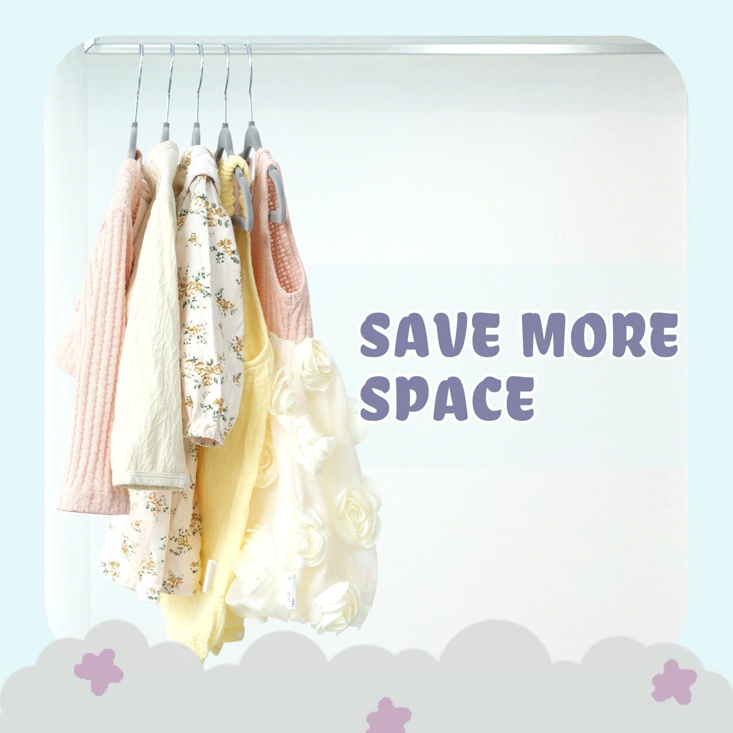 SPACE SAVING: These durable flocked hangers can improve the space utilization of your baby wardrobe and make it tidy, and you will make the clothes more orderly for quickly selection