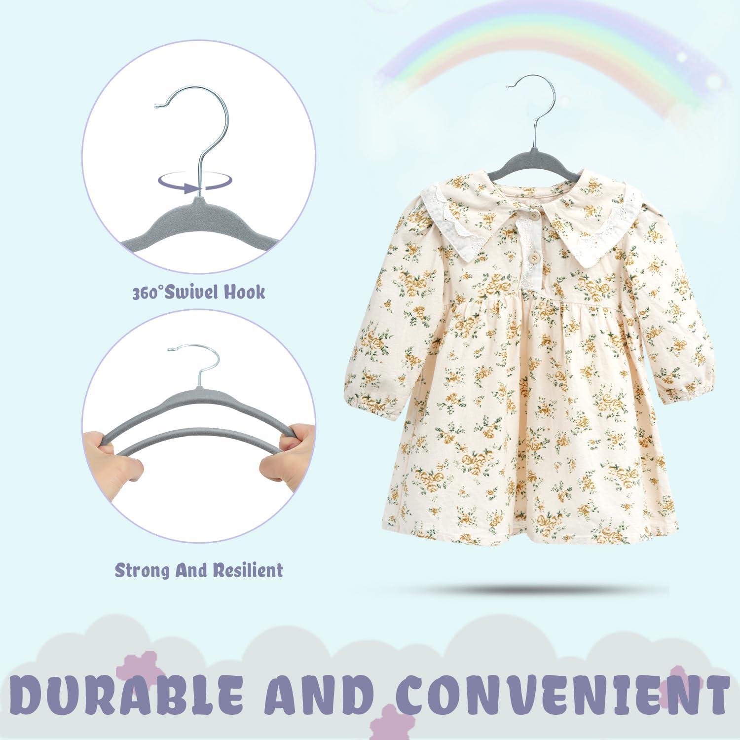 BAGAIL Kids Velvet Hangers 11 Inches Children's Clothes Hangers Non-Slip Baby Hangers for Infant/Toddler (Grey,50pack)(Grey15)