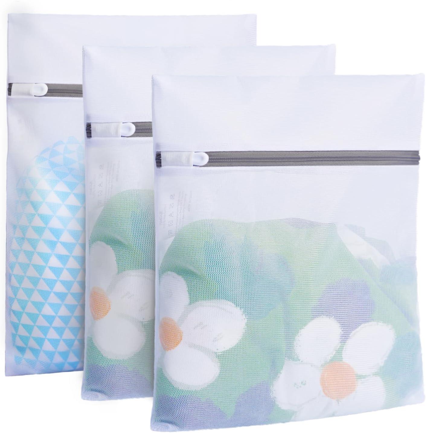 BAGAIL Laundry Bags Mesh Wash Bag for Intimates Lingerie and Delicates,3Pcs(Honeycomb, 1S, 1M, 1L)(White-Honeycomb)