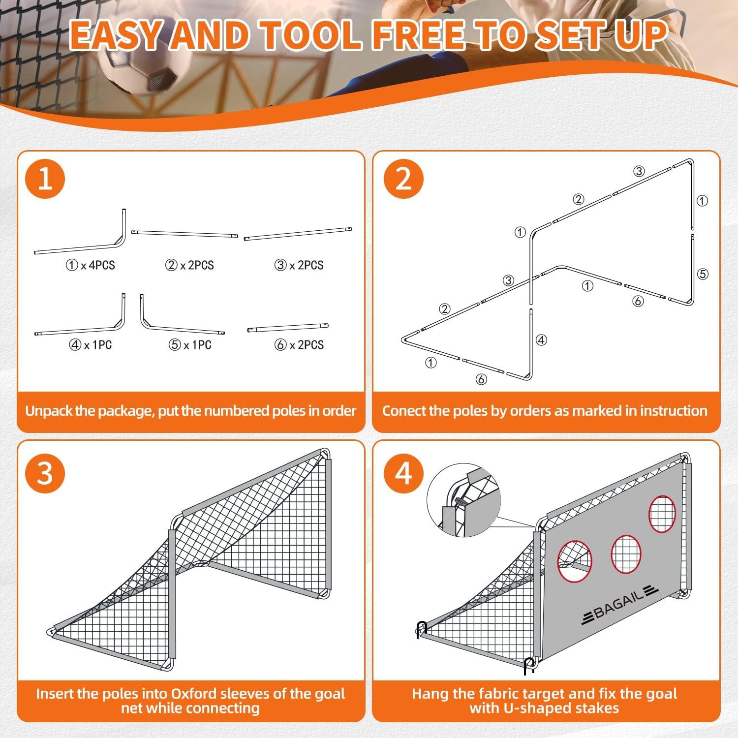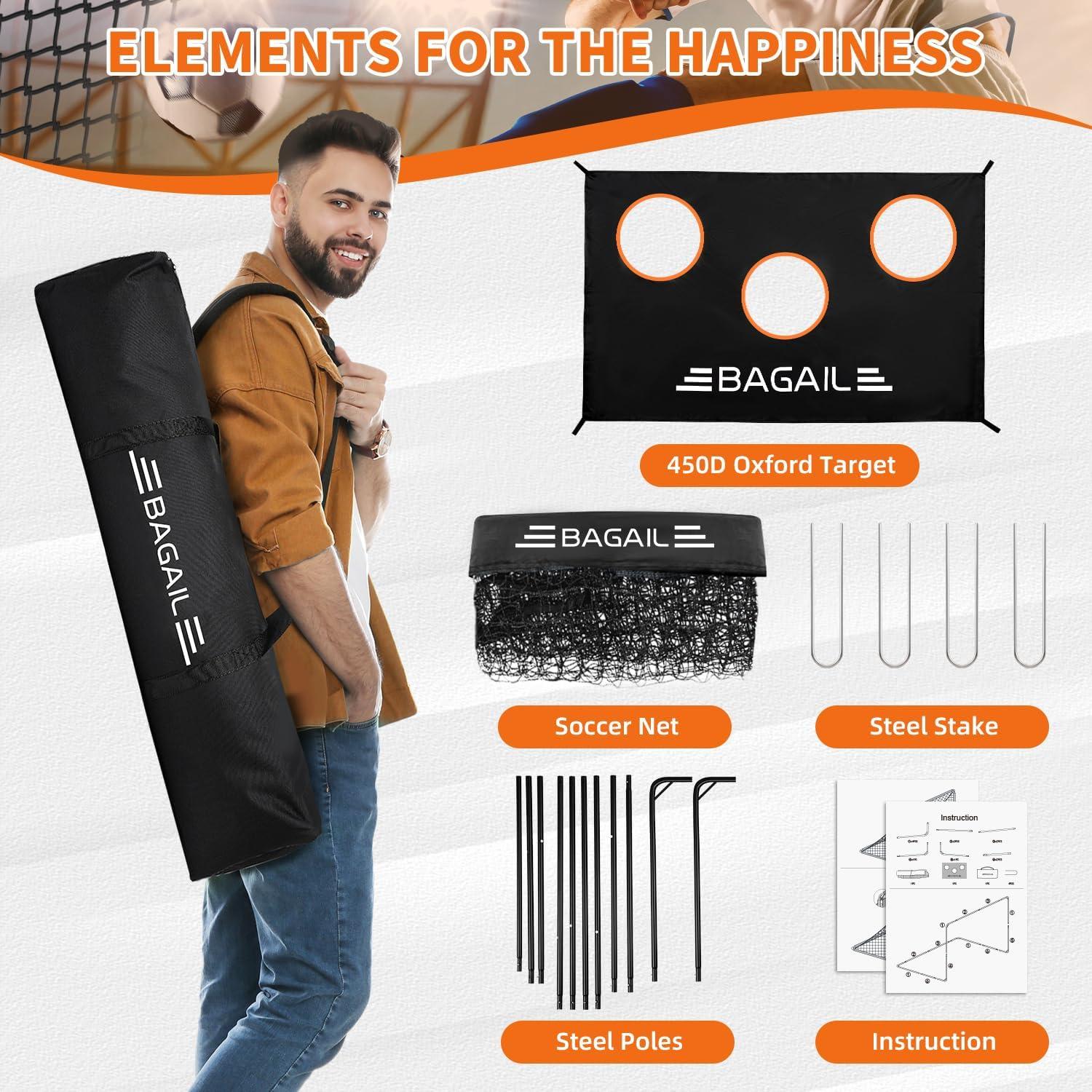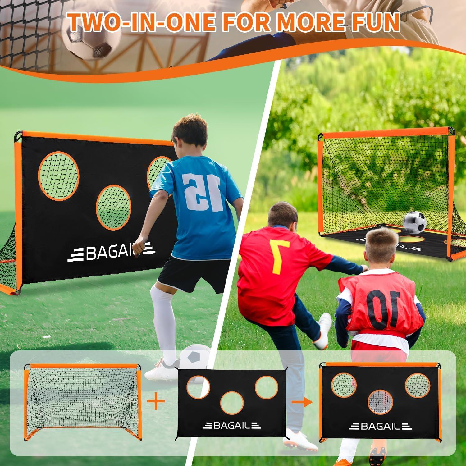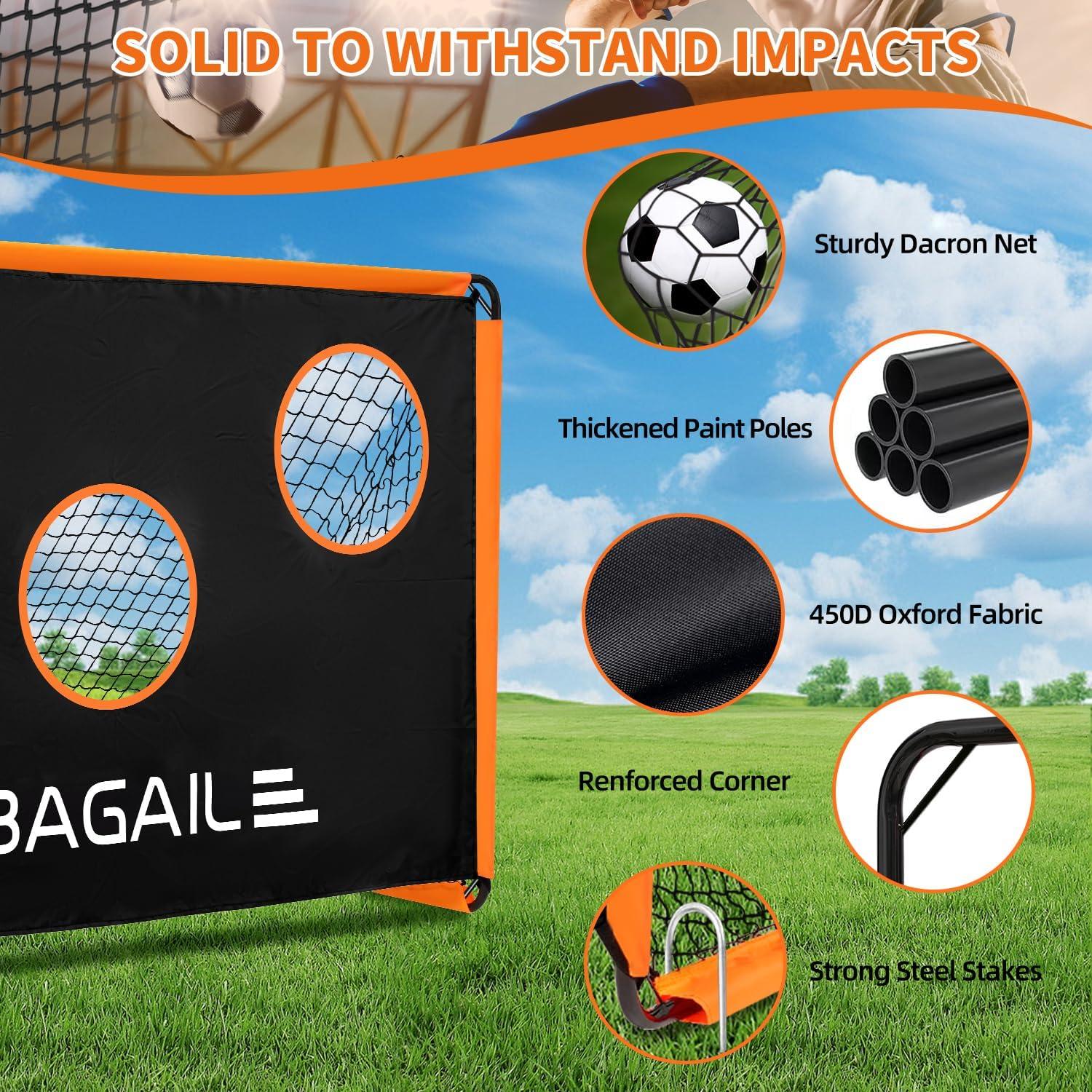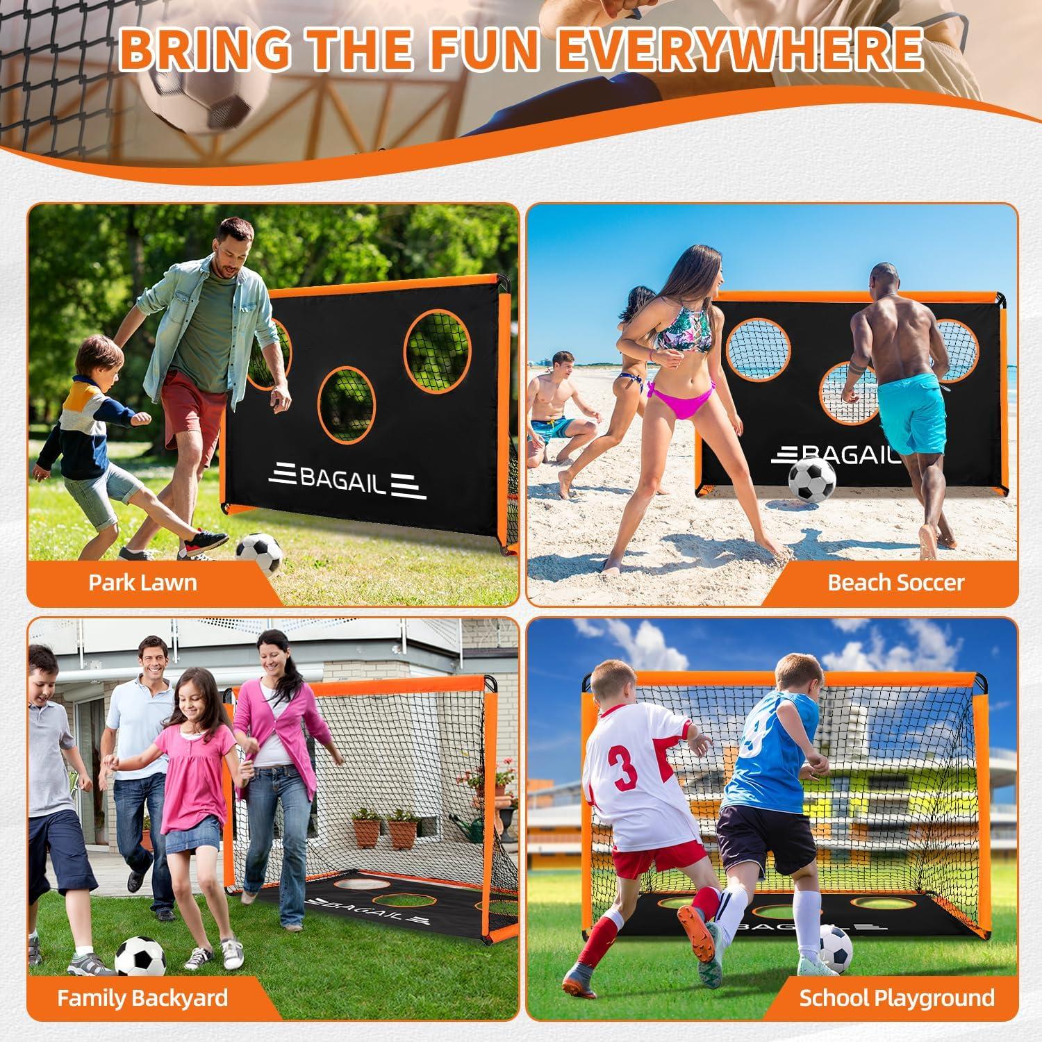 Fun Playtime: Our Bagail soccer goal for backyard features a 2-in-1 design, serving as a standard goal for practice or games. With the included target, it's ideal for honing shooting skills and accuracy. Explore more fun with this versatile goal