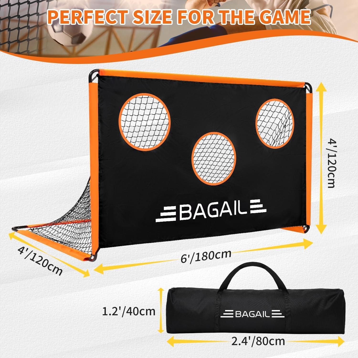 Ideal Size: Bagail portable soccer goal measures 6 x 4 x 4 feet (L*W*H), ideal for trainers to engage in soccer matches and precision practice. Play happily at home, in the yard, on the beach, or any grassy area