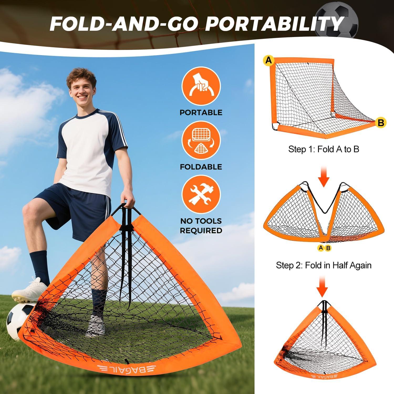 Portable Design: The foldable structure and carry bag make storage and transport effortless. When folded into a triangle, you can easily take it to the playgrounds, backyards, beaches, or park lawns. Enjoy soccer games anytime, anywhere