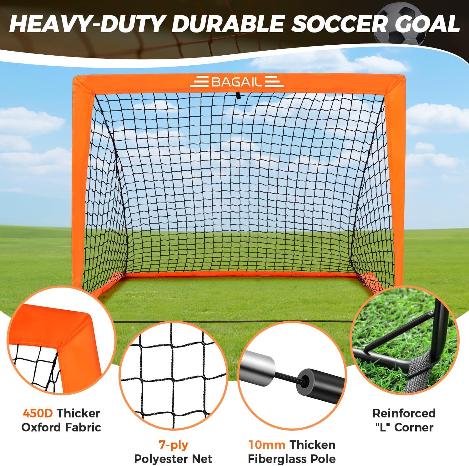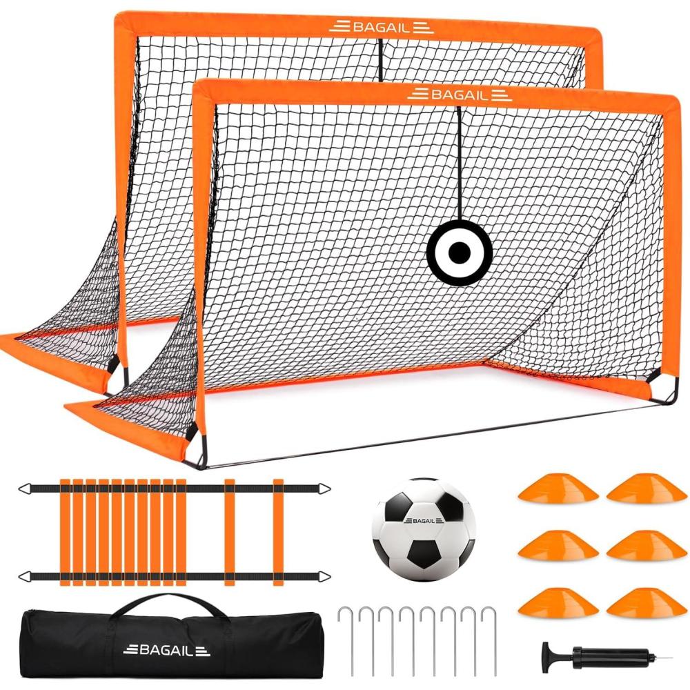 BAGAIL Soccer Goals for Backyard Set, 2 of 6 x 4ft Portable Pop Up Soccer Nets, Foldable Training Equipment with Soccer Ball, Ladder, Cones, Targets for Outdoor Games(Orange)