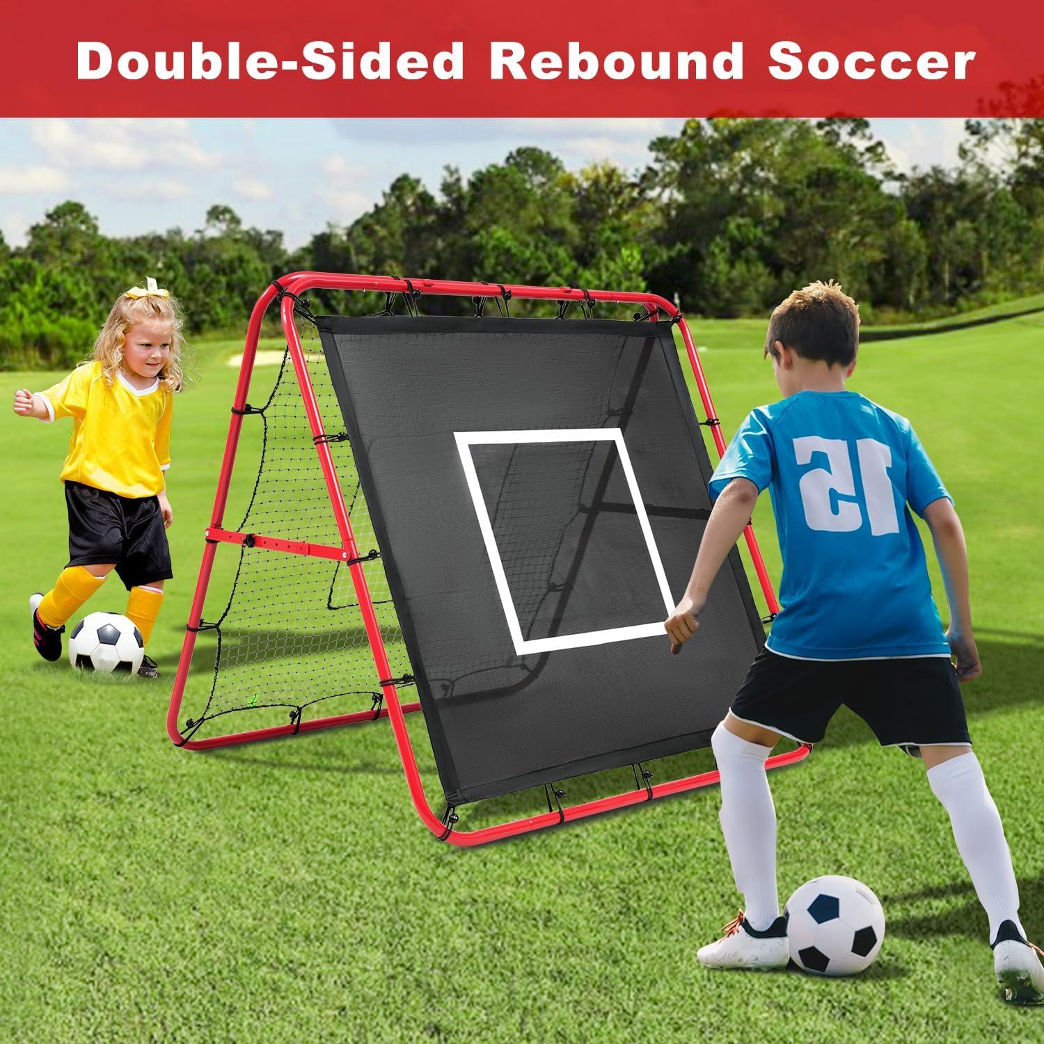 Exquisite Design: Double-sided rebound, coupled with a sturdy triangular structure, the soccer rebounder can withstand the simultaneous training of two people. The angle of the net can be adjusted to meet different training needs. The whole goal can be folded flat, which is convenient to carry or store. Have fun anywhere at anytime. An ideal present for children