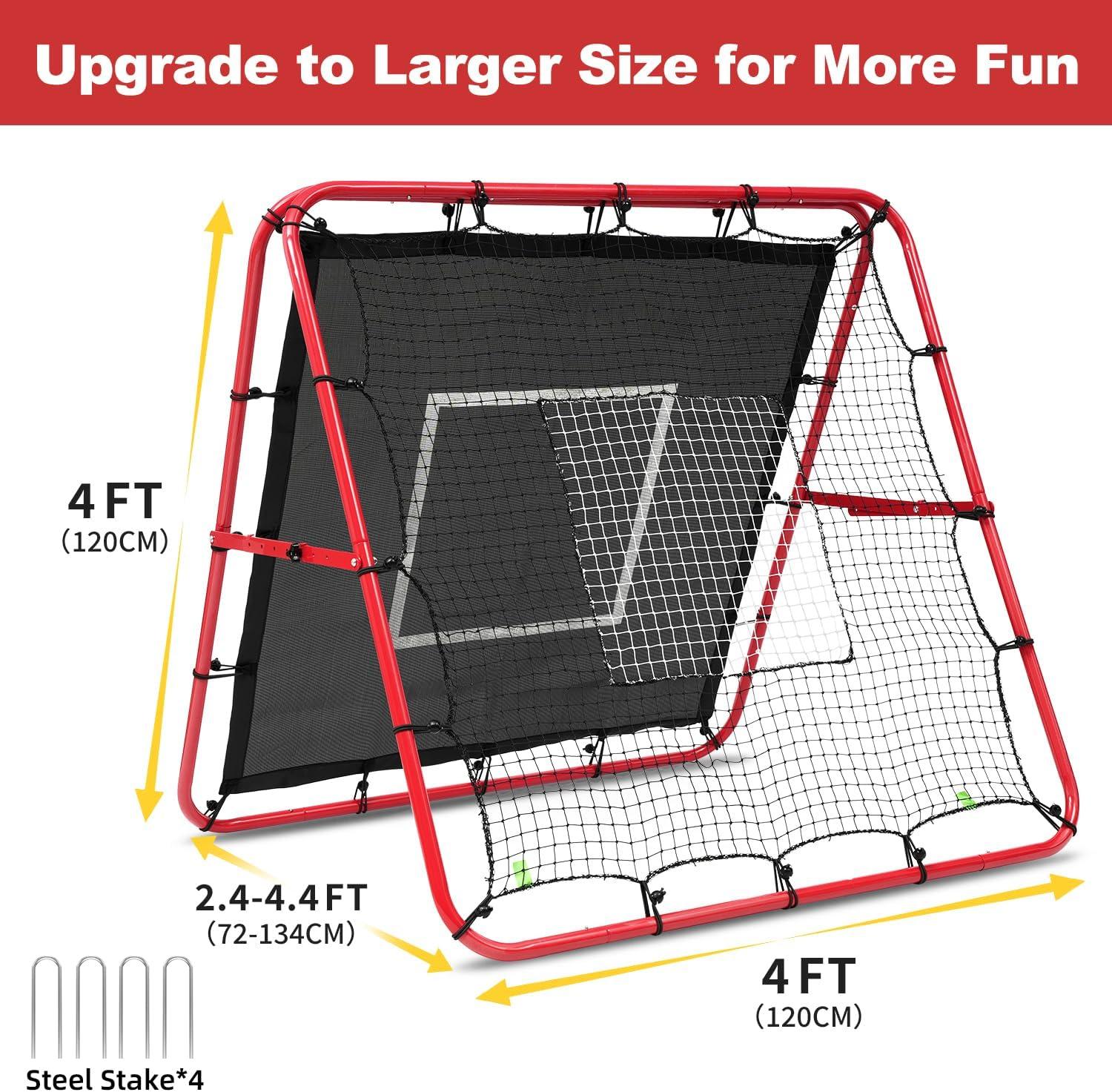 BAGAIL Soccer Rebounder Net, 4 x 4 Ft Pitch Back Baseball Softball Rebounder, Angle Adjustable Rebound Net for Control, Passing Practice, Easy Setup Bounce Back Net Gifts for Training(Red+Black)