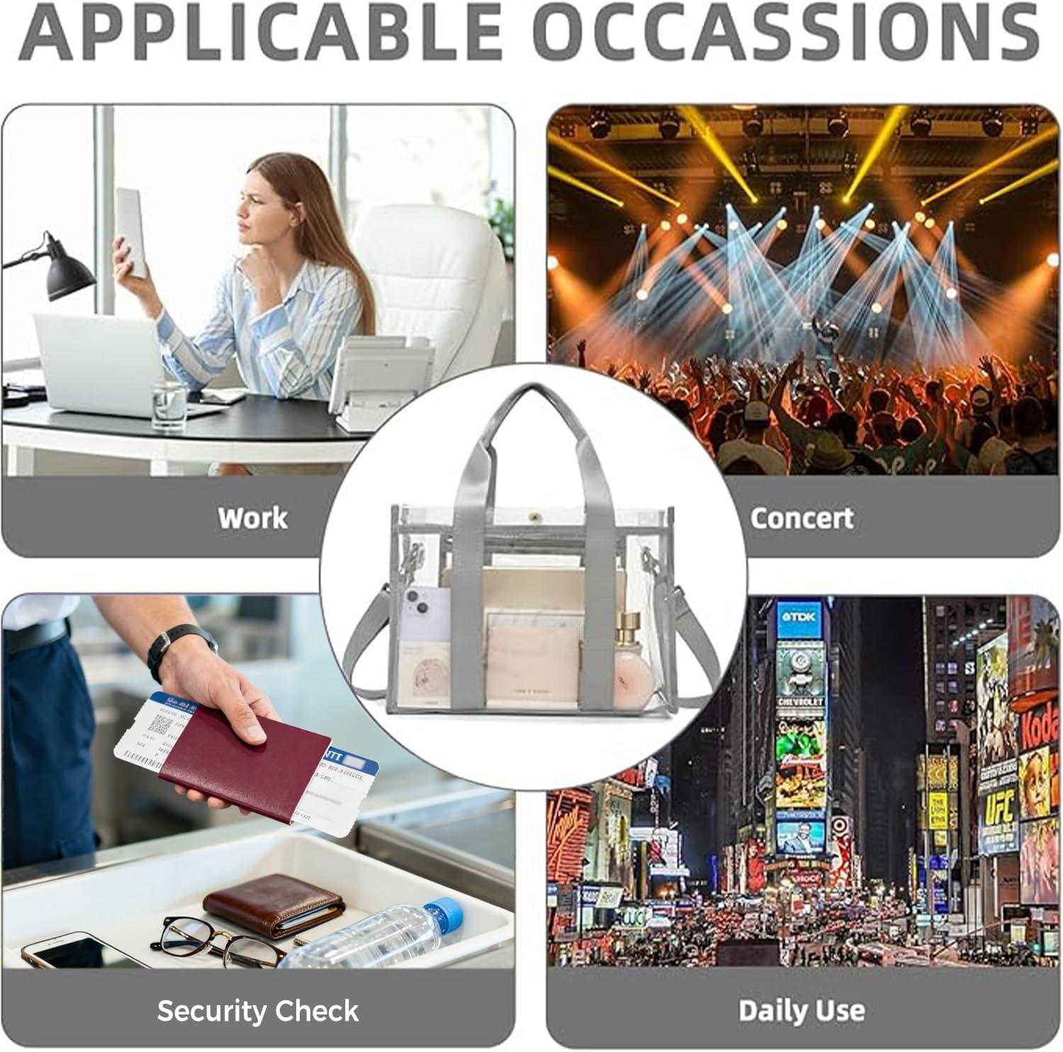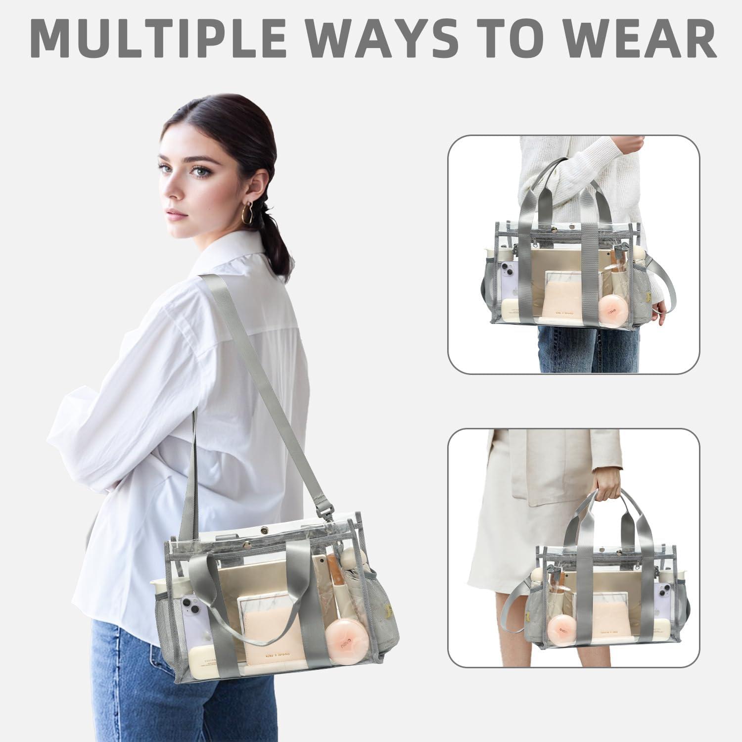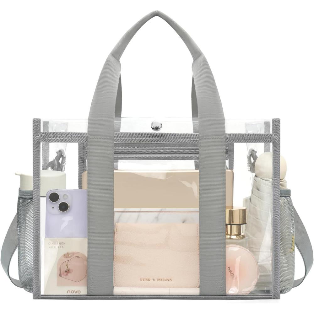imageBAGAIL Stadium Approved Clear Tote Bag with Inner Pocket Transparent Travel Bag for Sports Event Concert WorkGrey