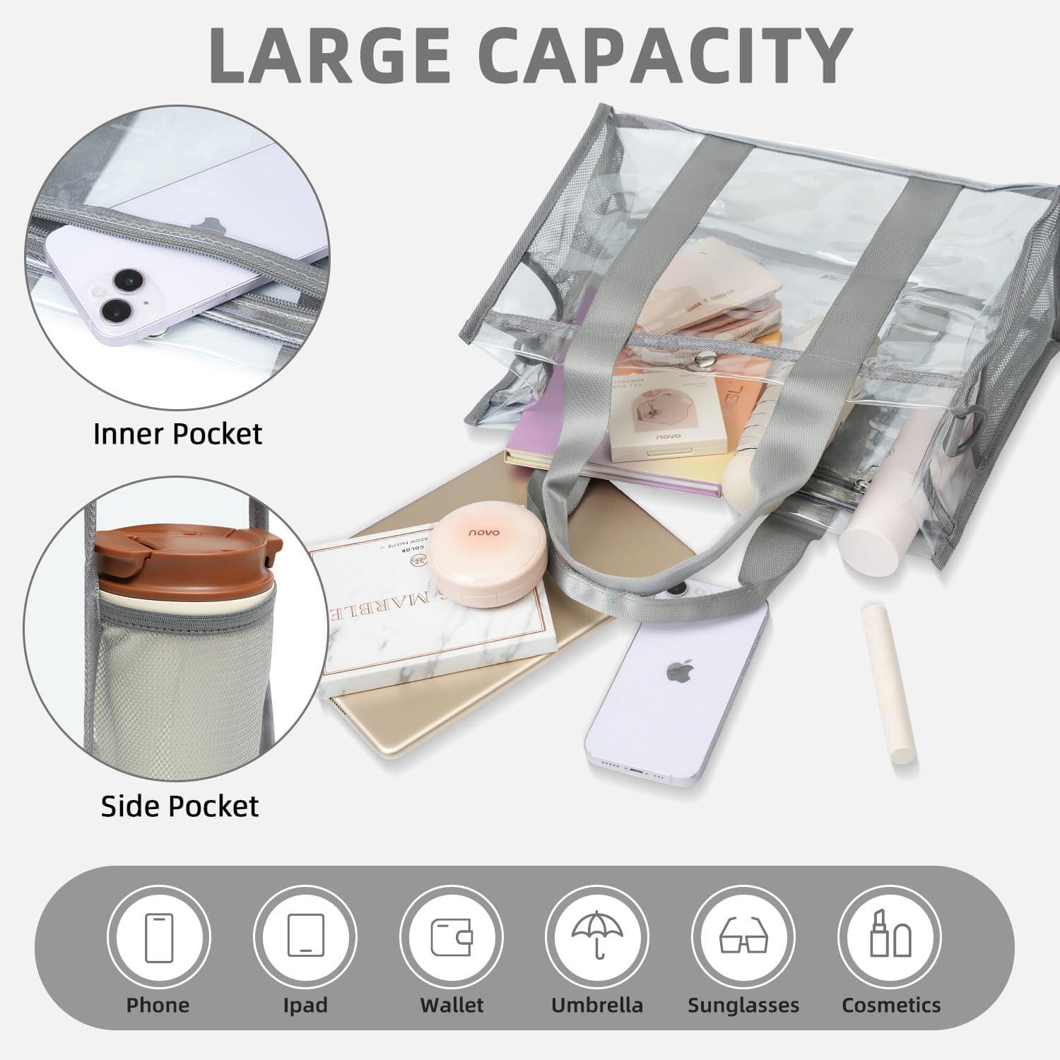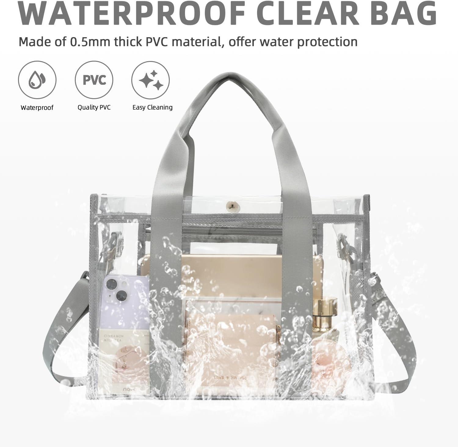 BAGAIL Stadium Approved Clear Tote Bag with Inner Pocket, Transparent Travel Bag for Sports Event, Concert, Work(Grey)
