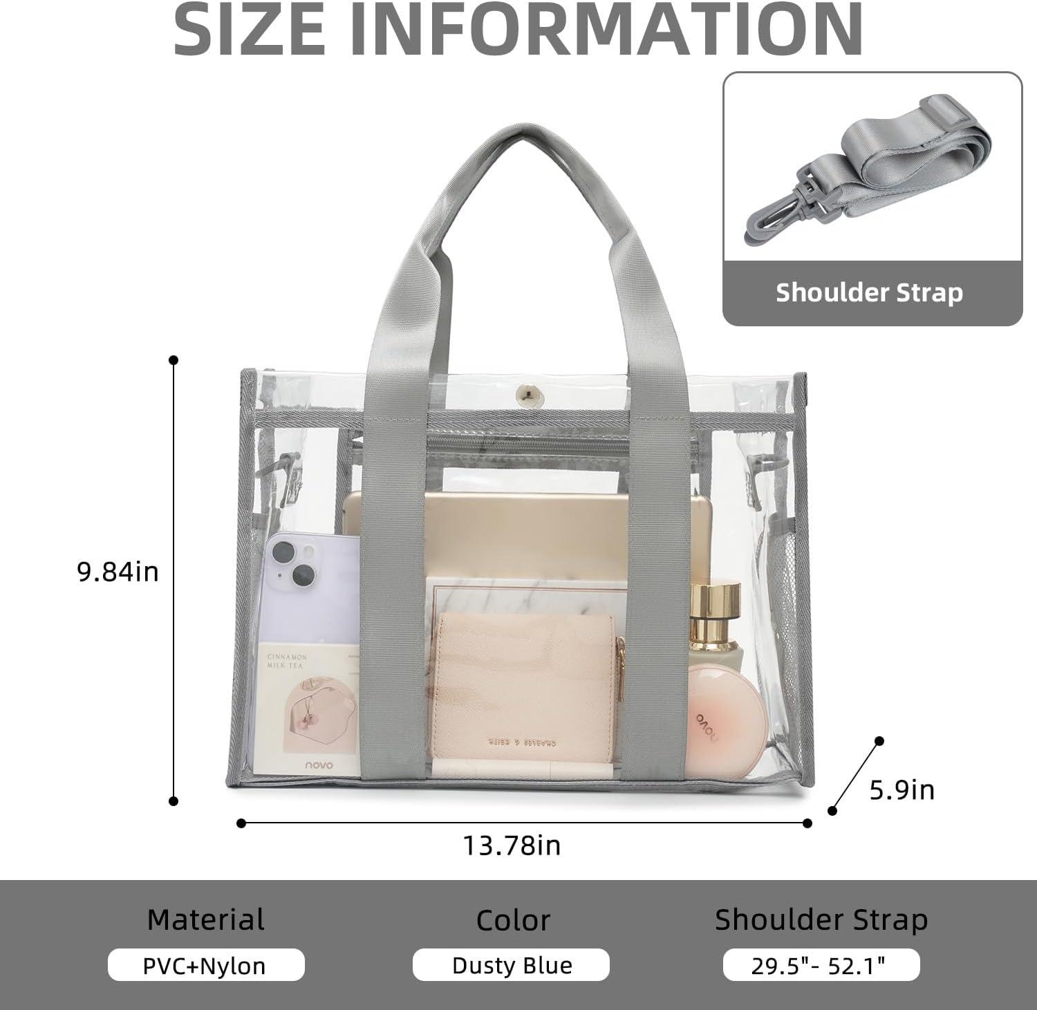 BAGAIL Stadium Approved Clear Tote Bag with Inner Pocket, Transparent Travel Bag for Sports Event, Concert, Work(Dusty Blue)