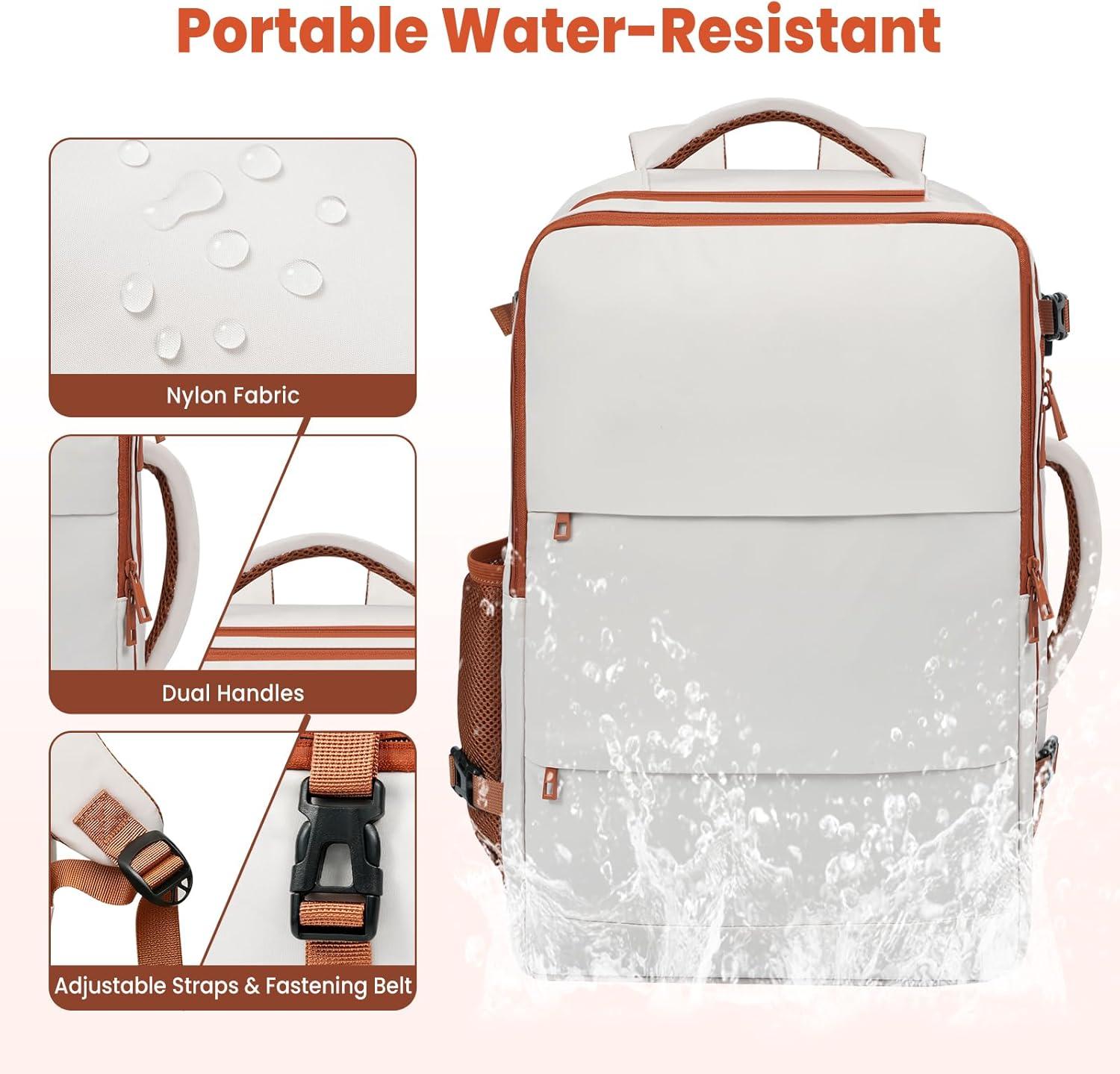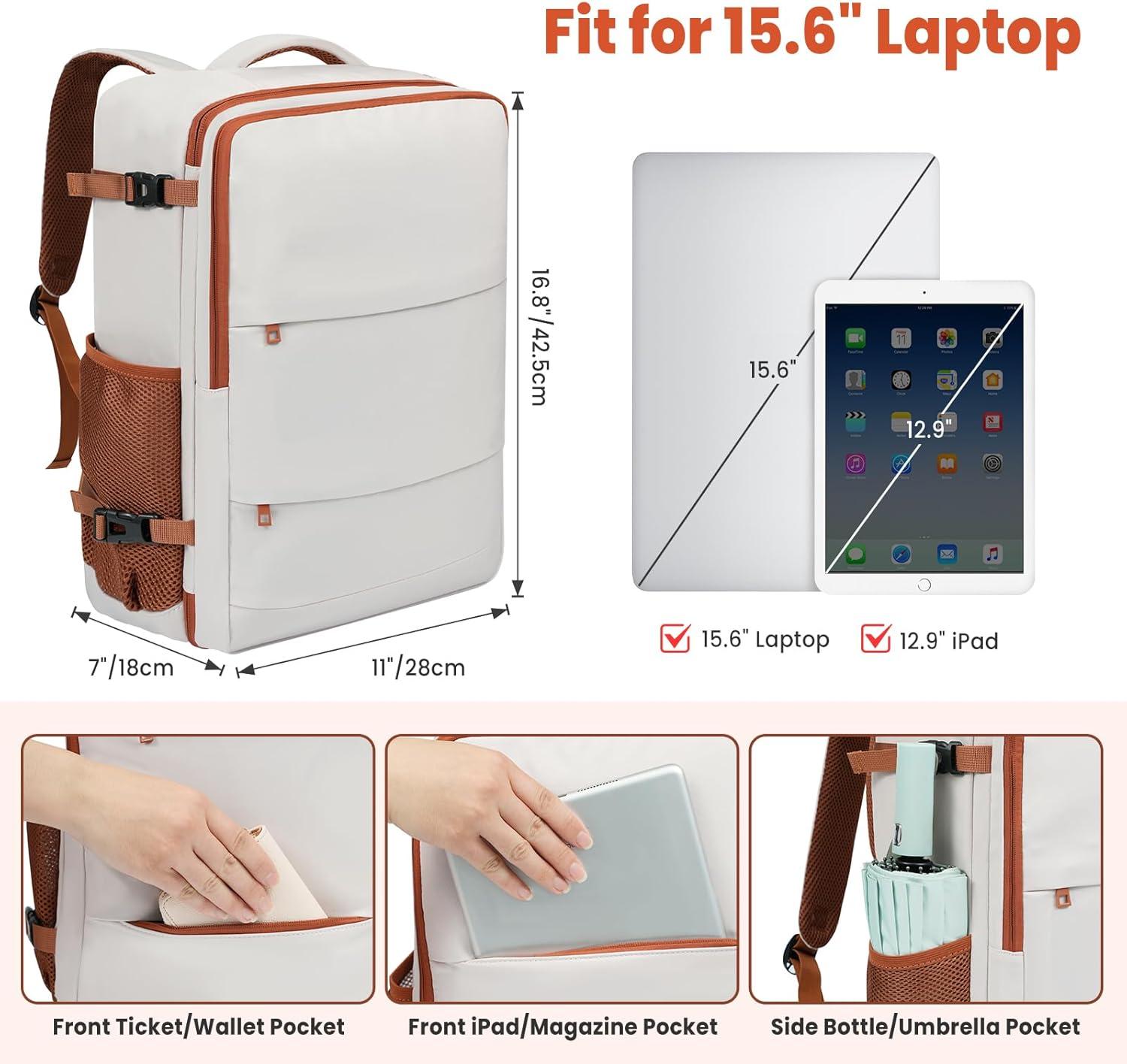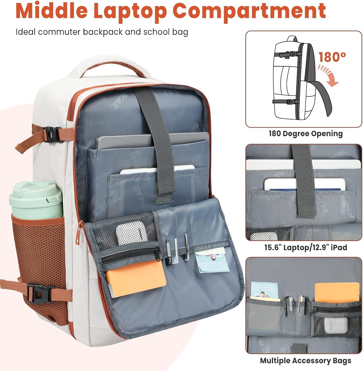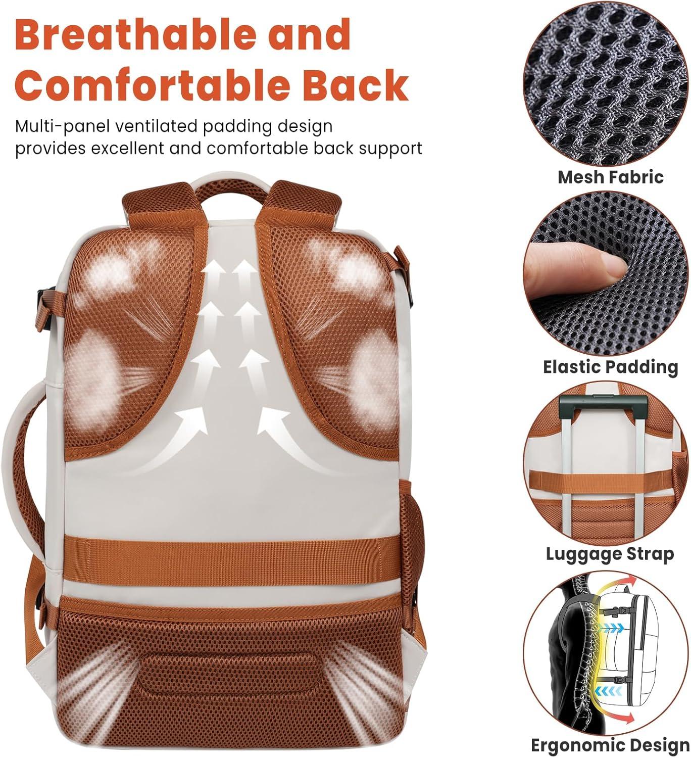 Airline Approved Laptop Backpack: 180 degree zipper closure helps you pass through security quickly. The carry-on backpack fits perfectly into overhead bins and under seats. The carry-on backpack size design (similar to a 20-inch rolling suitcase) is suitable for travel and meets airline carry-on requirements, suitable for most airlines.