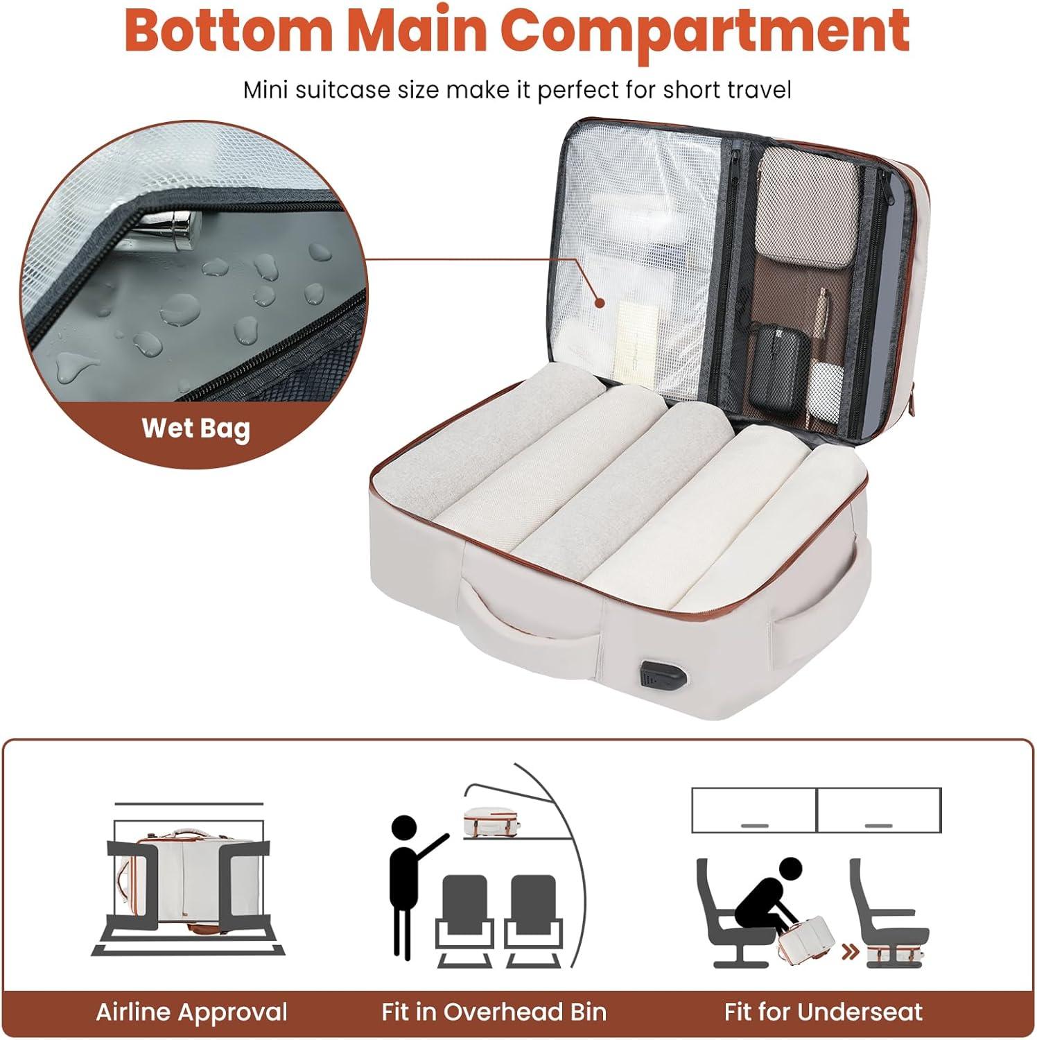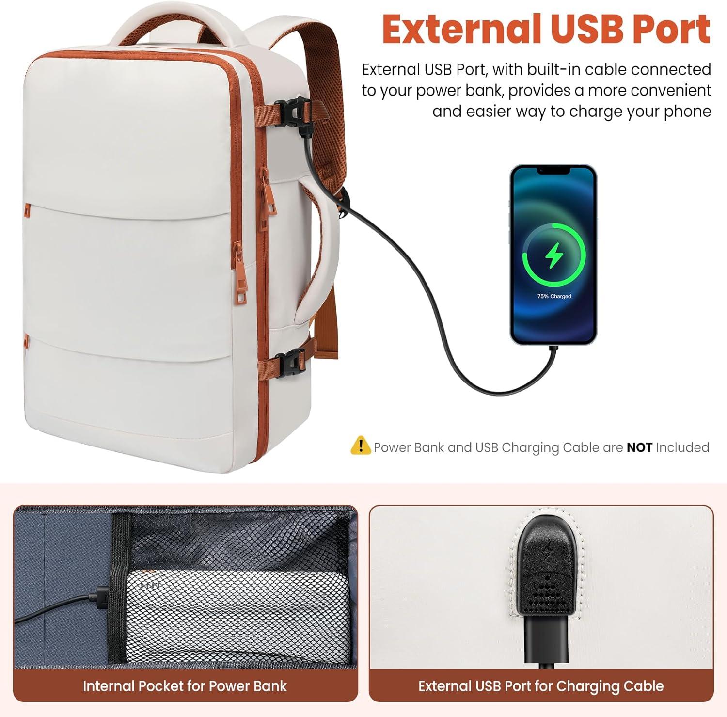 Convenient USB Port: Large carry on backpack with USB port outside and the cable to connect your power bank inside, this suitcase backpack for travel offers you a more convenient way to charge your phone while walking. Please note that the powerbank and the cable to charge the phone are not included in this travel laptop backpack.