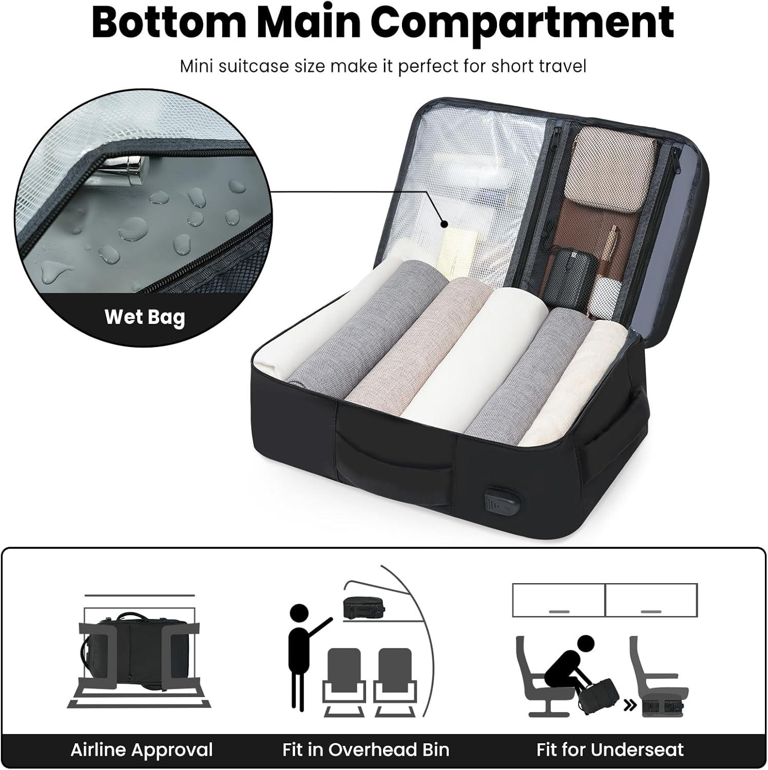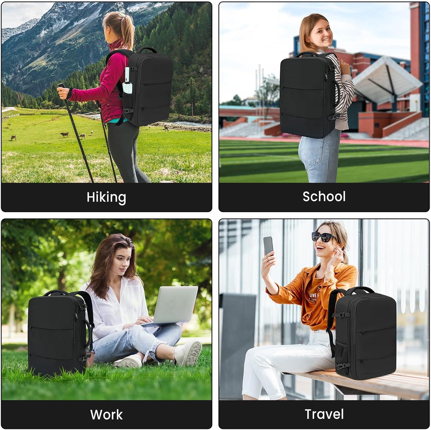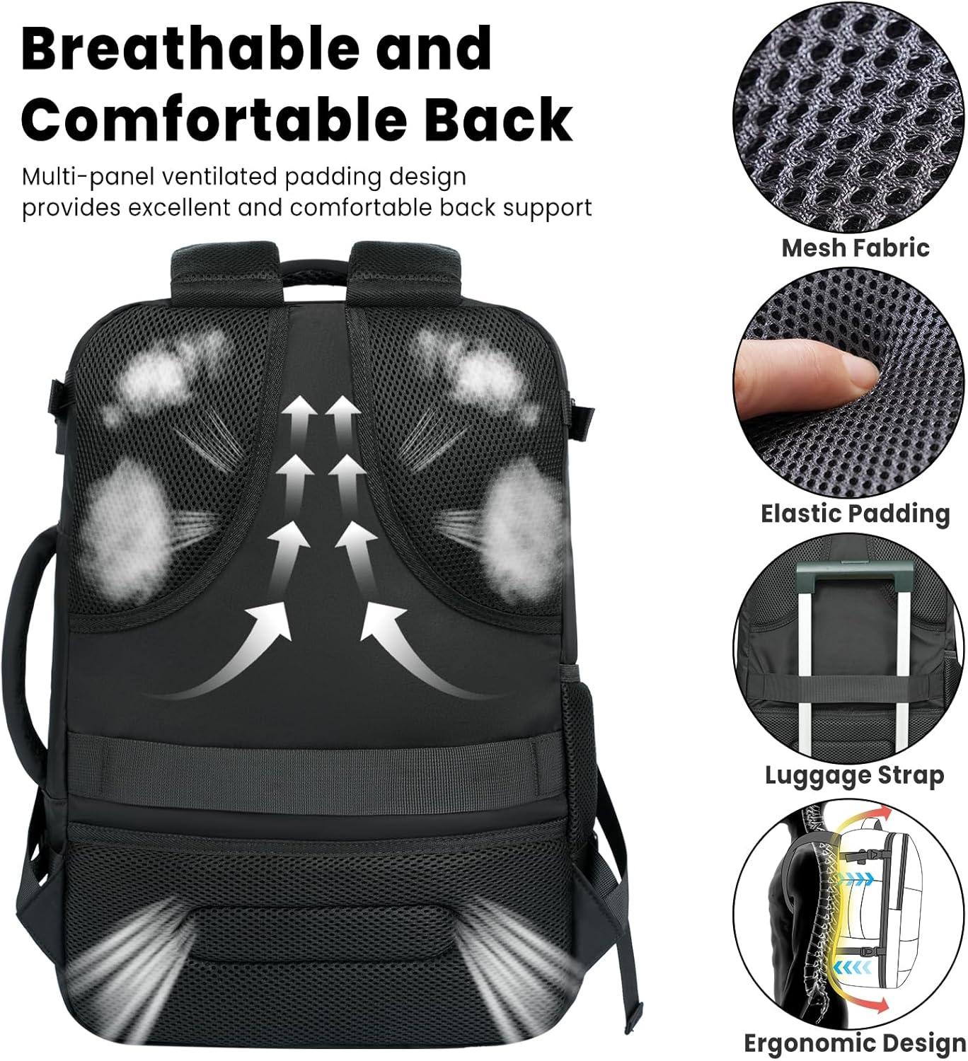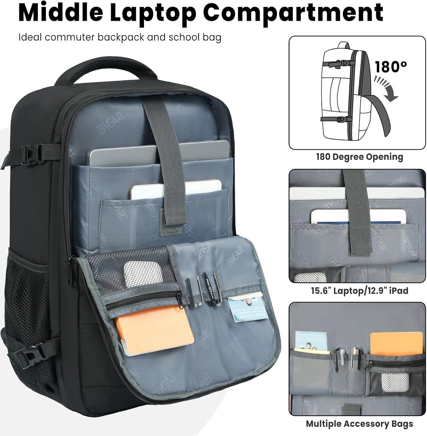 Airline Approved Laptop Backpack: 180 degree zipper closure helps you pass through security quickly. The carry-on backpack fits perfectly into overhead bins and under seats. The carry-on backpack size design (similar to a 20-inch rolling suitcase) is suitable for travel and meets airline carry-on requirements, suitable for most airlines.